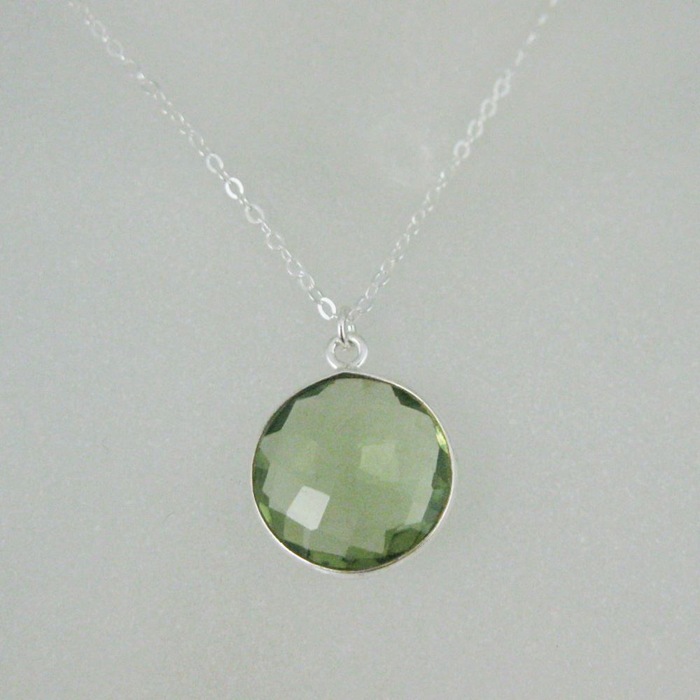 Stone: Green Amethyst QuartzStone Shape: Faceted coin shape on both sides. Pendant Measurement: 19mm long, stone is 14mm.