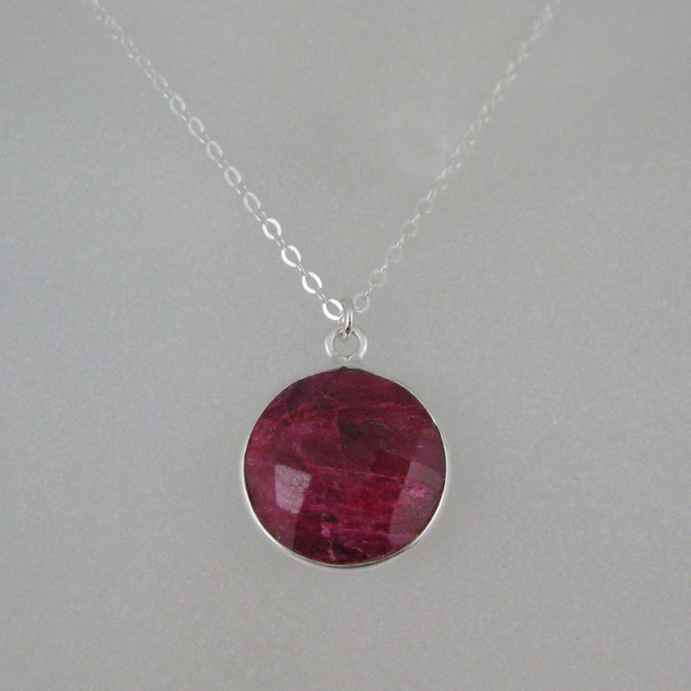 Stone: Ruby Dyed- Dyed RopadaStone Shape: Faceted coin shape on both sides. Pendant Measurement: 19mm long, stone is 14mm