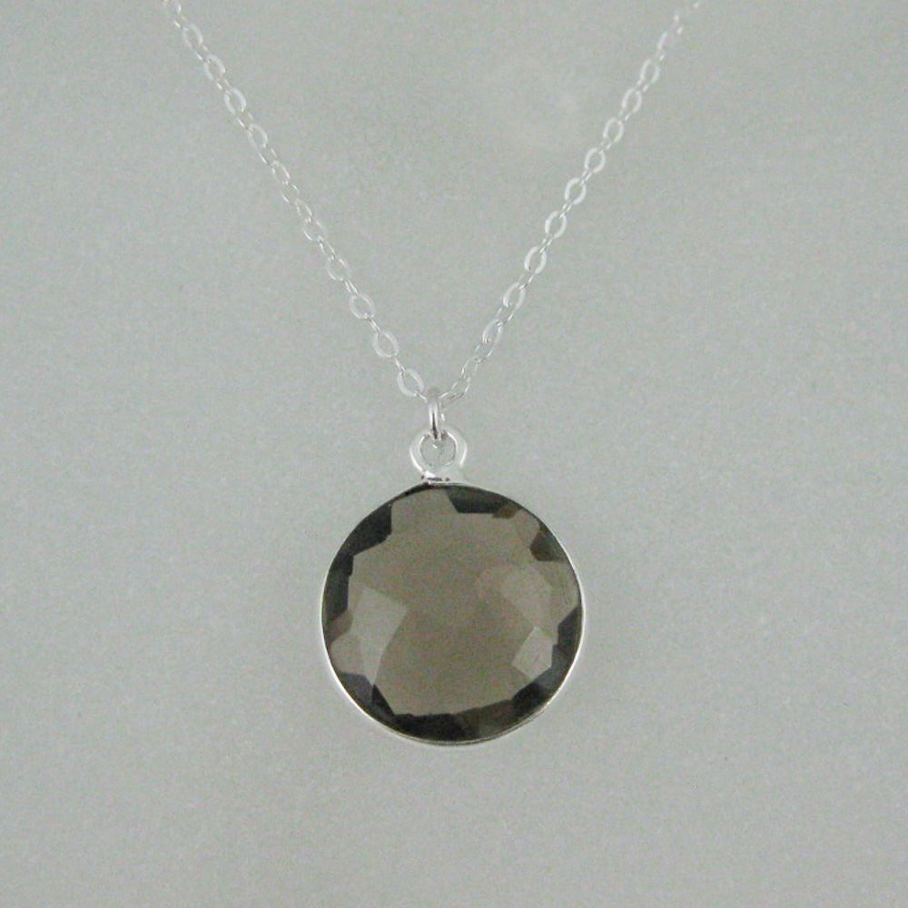 Stone: Smoky QuartzStone Shape: Faceted coin shape on both sides. Pendant Measurement: 19mm long, stone is 14mm.