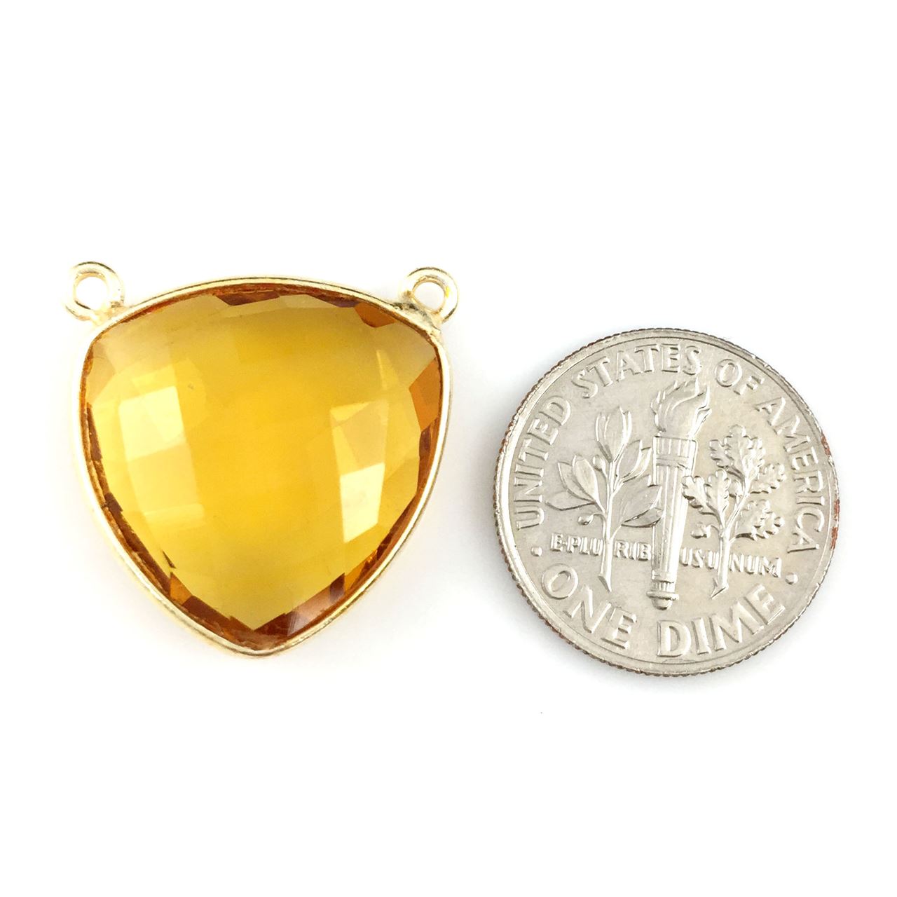 Add to compare list Bezel Gemstone Connector Pendant - Peridot Quartz - Gold Vermeil - Large Trillion Shaped Faceted - 18 mm SKU : 209104-PRD 18mm- Gemstone Pendant Log In for Wholesale Prices