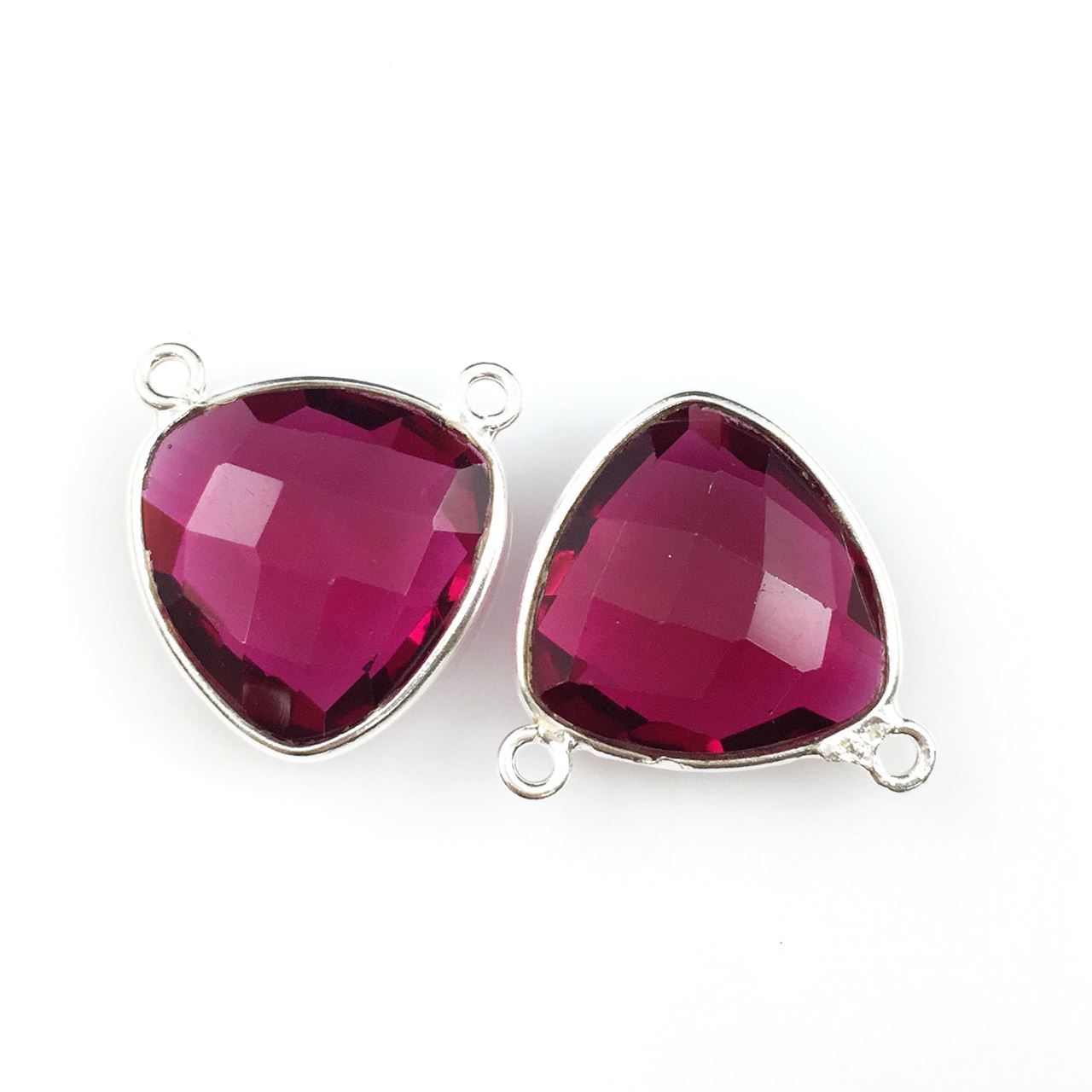 Add to compare list Bezel Gemstone Connector Pendant - Pink Amethyst Quartz - Sterling Silver - Small Trillion Shaped Faceted - 15 mm - 1 piece SKU : 209115-PAM 15mm- Gemstone Pendant Log In for Wholesale Prices