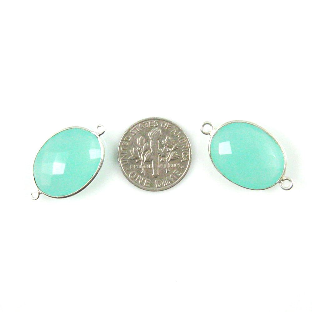 Bezel Gem Links - Sterling Silver - Faceted Oval Shape - Peru Chalcedony