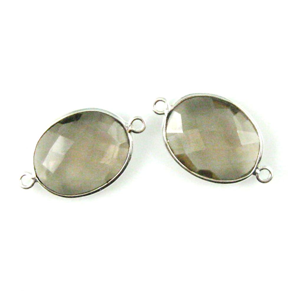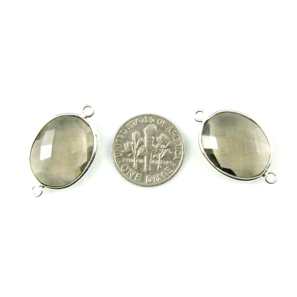 Bezel Gem Links - Sterling Silver - Faceted Oval Shape - Smoky Quartz