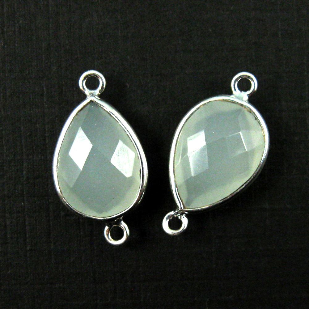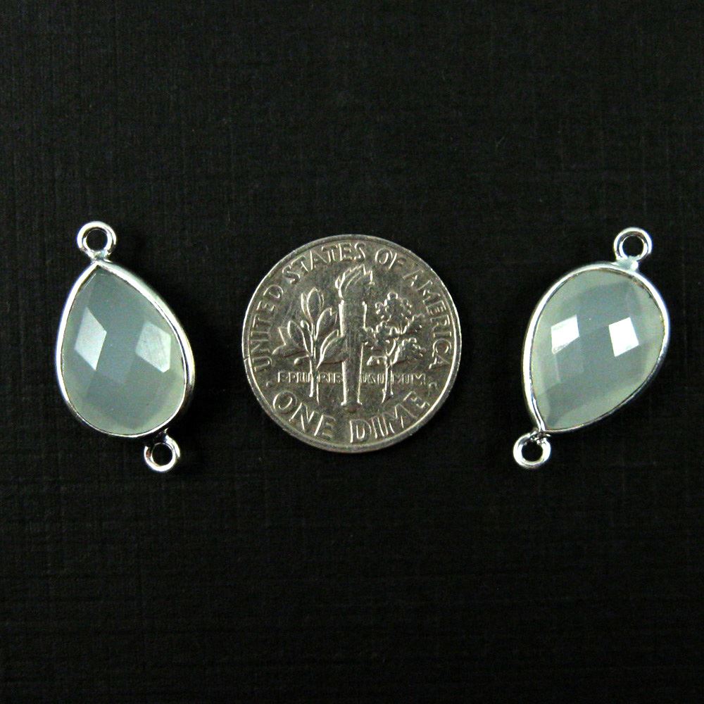 Bezel Gem Links - Sterling Silver - Faceted Pear Shape - Aqua Chalcedony
