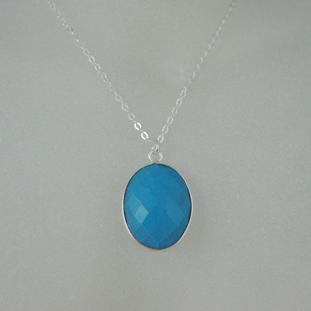 Stone: TurquoiseStone Shape: Faceted oval shape on both sides. Pendant Measurement: 21mm long, stone is 14x18mm