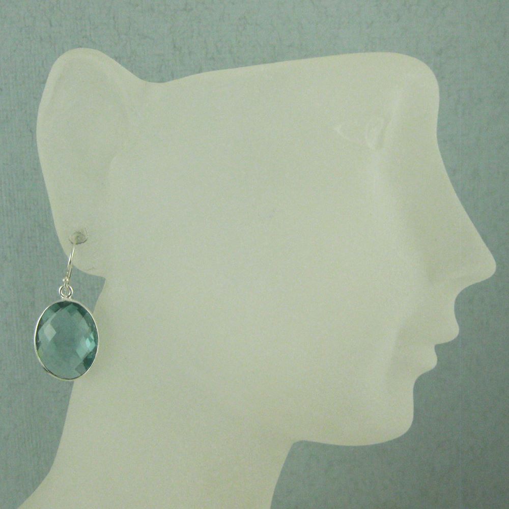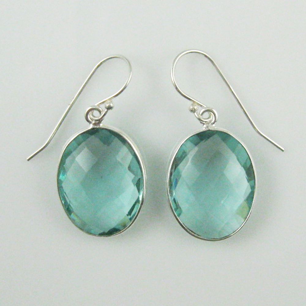 Stone: Aqua QuartzStone Shape: Faceted oval shape on both sides. Pendant Measurement: 19mm long, stone is 14mm. Total Earring Length: 30mm
