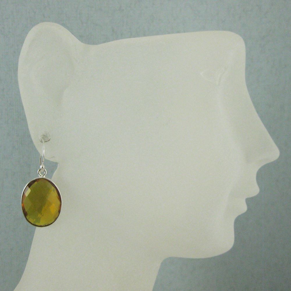 Stone: Citrine QuartzStone Shape: Faceted oval shape on both sides. Pendant Measurement: 19mm long, stone is 14mm. Total Earring Length: 30mm