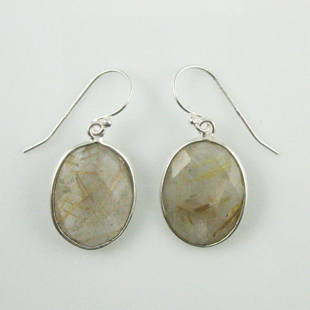 Stone: Gold Rutilated QuartzStone Shape: Faceted oval shape on both sides. Pendant Measurement: 19mm long, stone is 14mm. Total Earring Length: 30mm