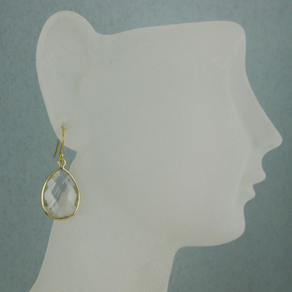 Stone: Crystal QuartzStone Shape: Faceted pear shape on both sides. Pendant Measurement: 22mm long, stone is 13x18mm. Total Earring Length: 30mm