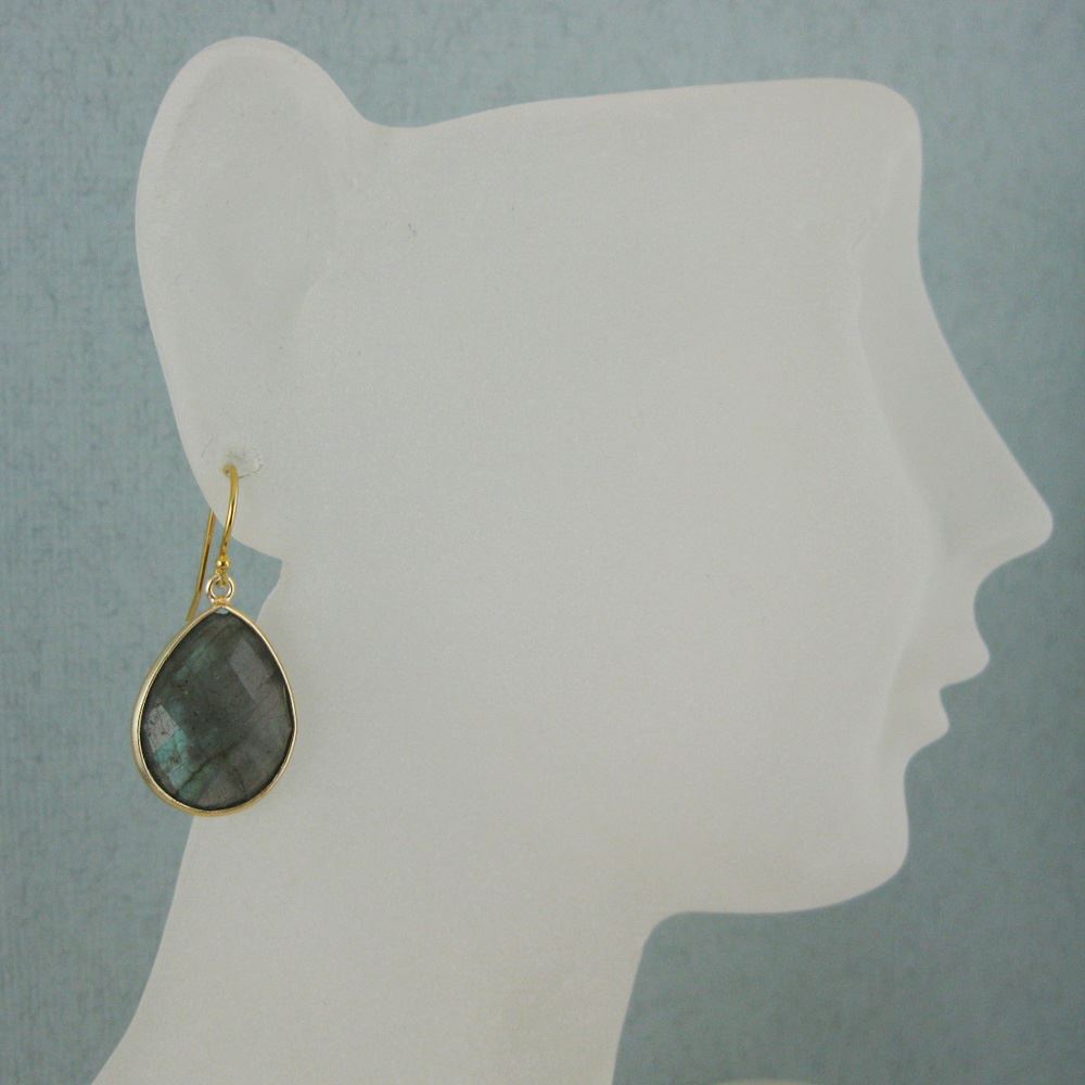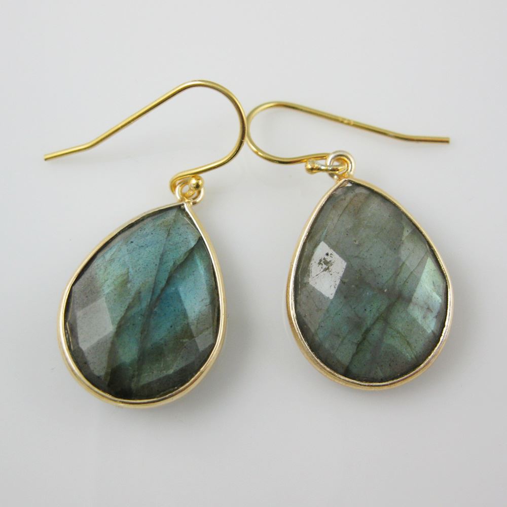 Stone: LabradoriteStone Shape: Faceted pear shape on both sides. Pendant Measurement: 22mm long, stone is 13x18mm. Total Earring Length: 30mm