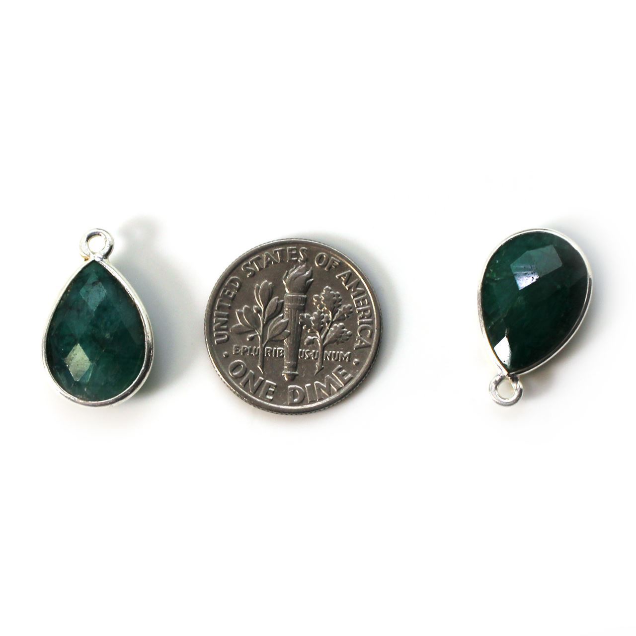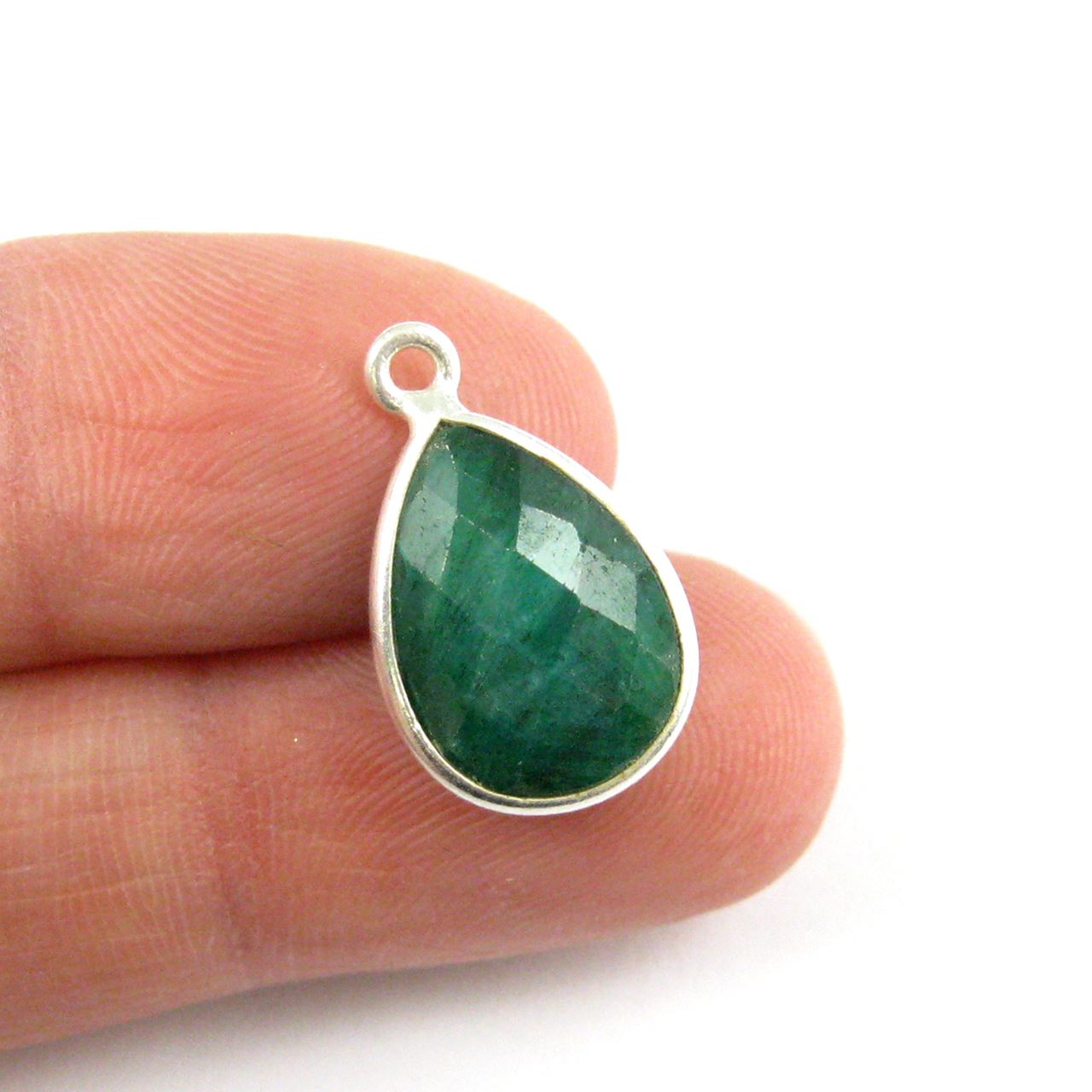 Stone: Emerald Dyed- Dyed RopadaFrame Material: Solid Genuine .925 Sterling Silver. Shape: Faceted pear shape on both sides. Measurement: 18.5mm long 11.5mm wide, stone size is 10x14mm. Weight: 1.13 grams per pieceQuantity: 1 pc
