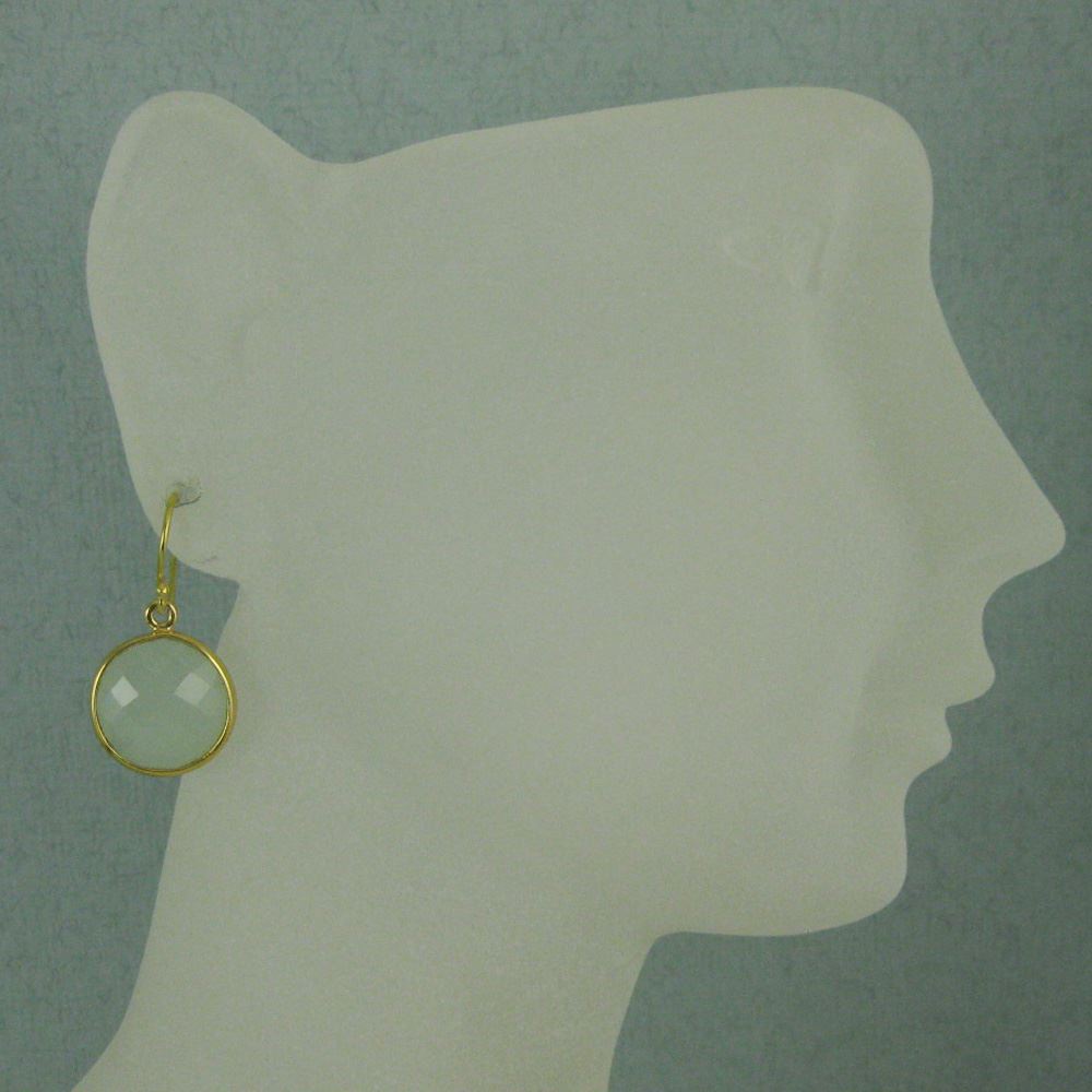 Stone: Aqua ChalcedonyStone Shape: Faceted coin shape on both sides. Pendant Measurement: 19mm long, stone is 14mm. Total Earring Length: 25mm