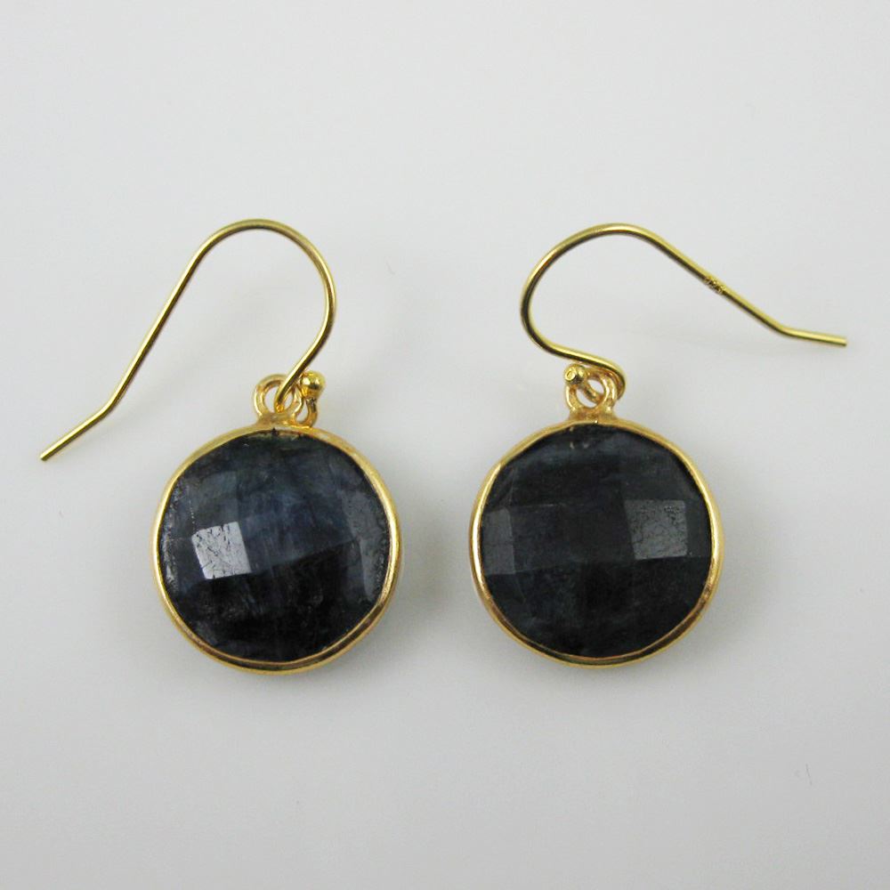 Stone: Blue Sapphire Dyed- Dyed RopadaStone Shape: Faceted coin shape on both sides. Pendant Measurement: 19mm long, stone is 14mm. Total Earring Length: 25mm