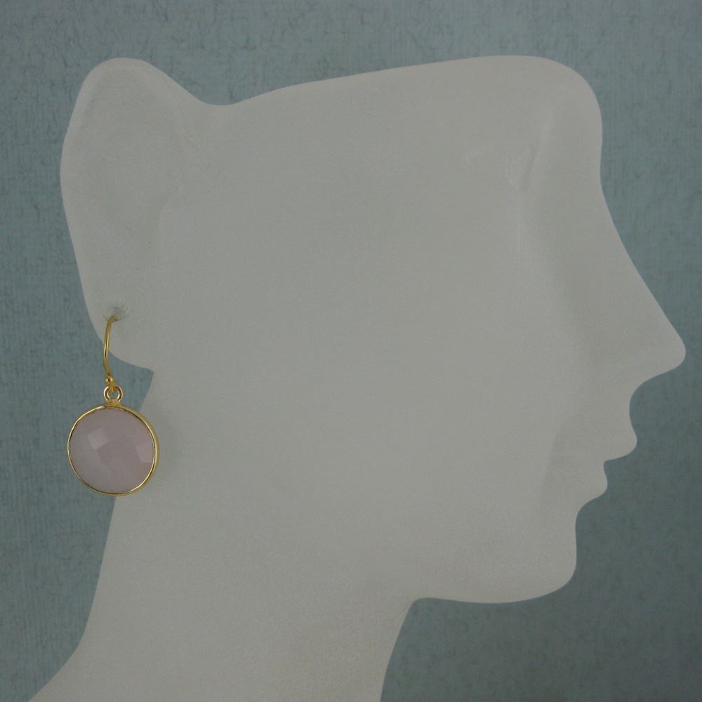 Stone: Pink ChalcedonyStone Shape: Faceted coin shape on both sides. Pendant Measurement: 19mm long, stone is 14mm. Total Earring Length: 25mm