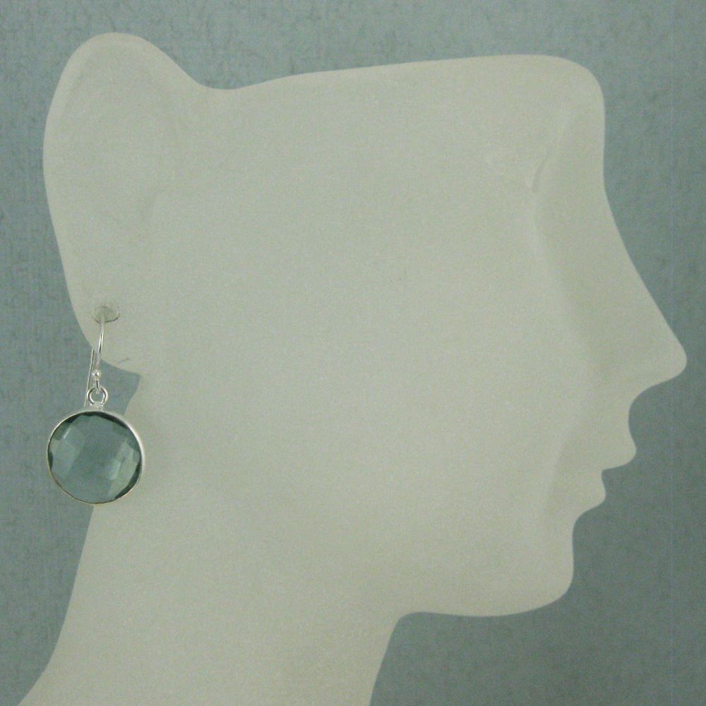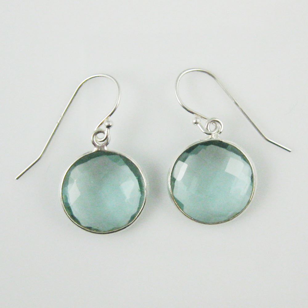 Stone: Aqua QuartzStone Shape: Faceted coin shape on both sides. Pendant Measurement: 19mm long, stone is 14mm. Total Earring Length: 25mm