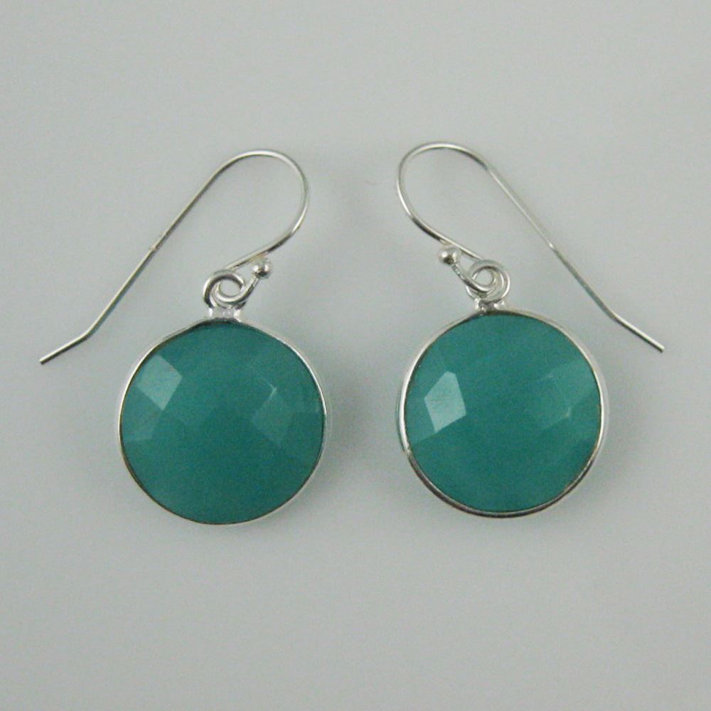 Stone: Peru ChalcedonyStone Shape: Faceted coin shape on both sides. Pendant Measurement: 19mm long, stone is 14mm. Total Earring Length: 25mm
