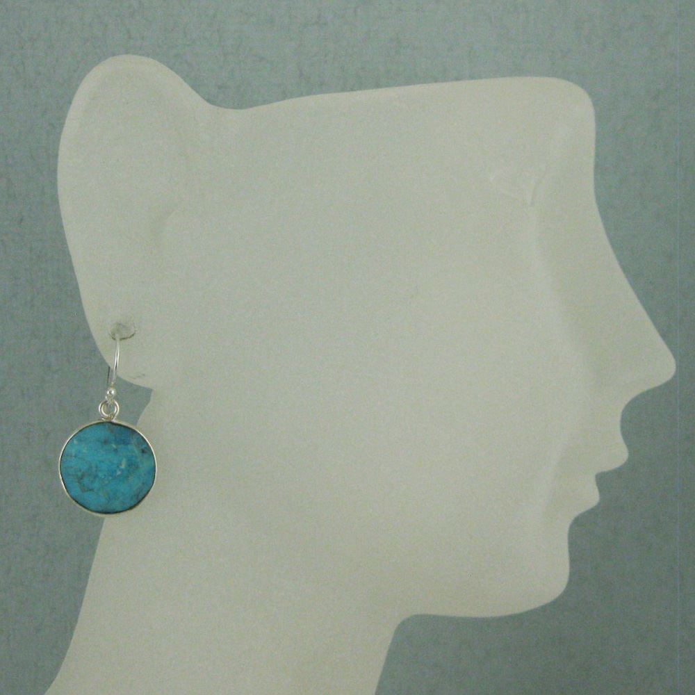 Stone: TurquoiseStone Shape: Faceted coin shape on both sides. Pendant Measurement: 19mm long, stone is 14mm. Total Earring Length: 25mm
