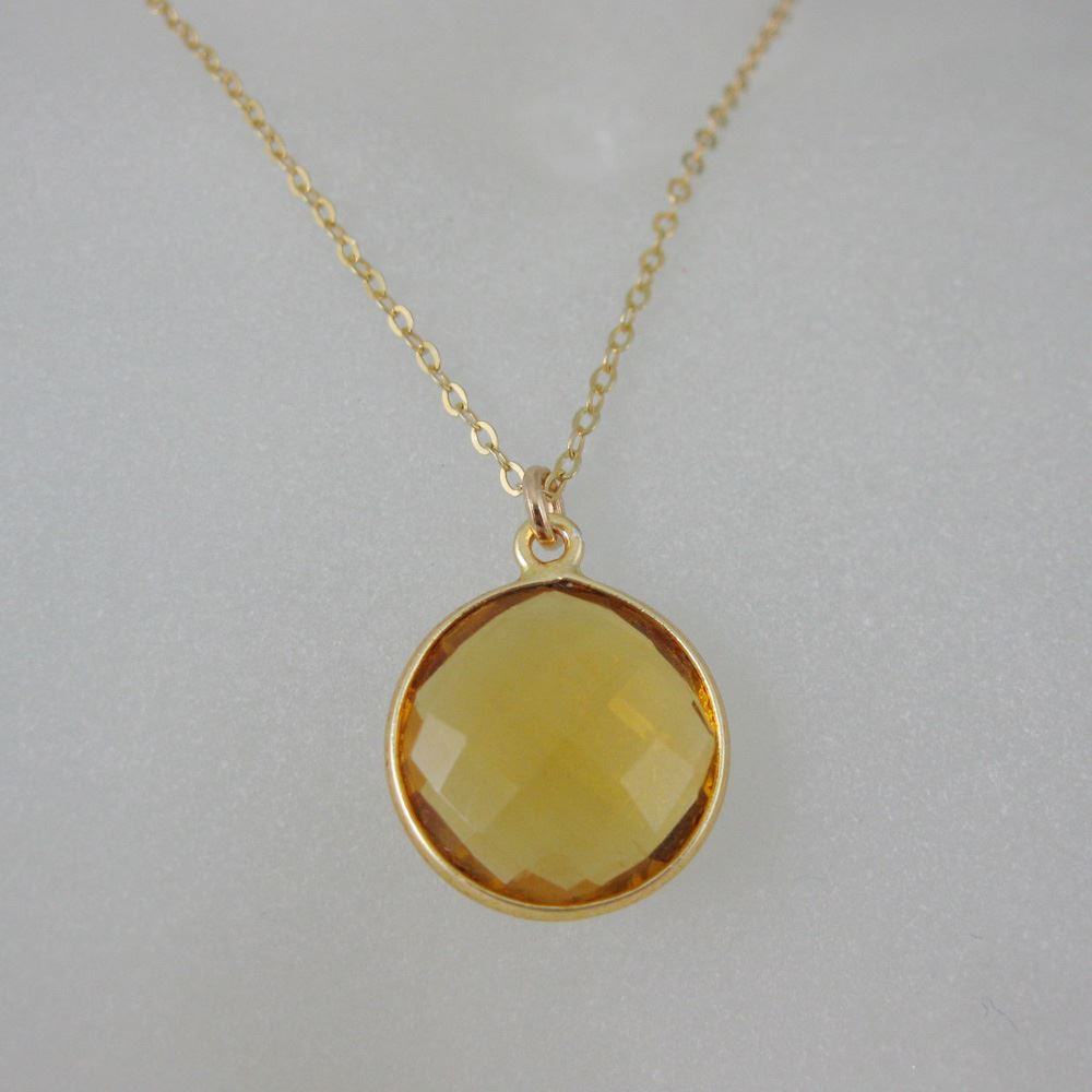 Stone: Citrine QuartzStone Shape: Faceted coin shape on both sides. Pendant Measurement: 19mm long, stone is 14mm