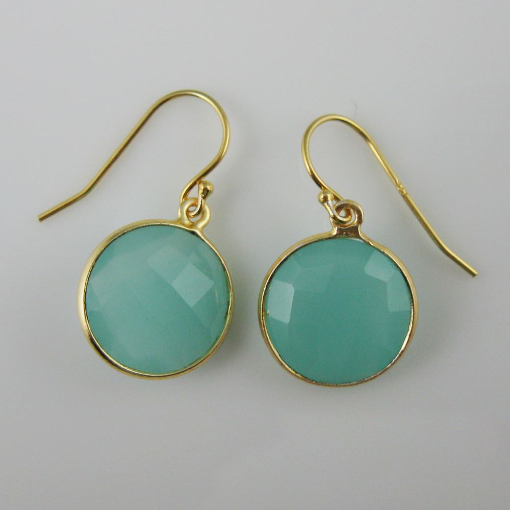Bezel Gemstone Round Pendant Necklace & Earrings-Gold Plated-Peru Chalcedony (16-24")