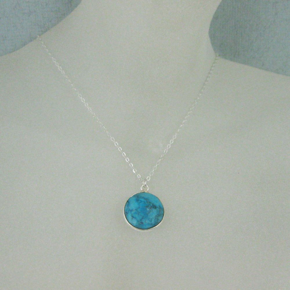 Stone: TurquoiseStone Shape: Faceted coin shape on both sides. Pendant Measurement: 19mm long, stone is 14mm. Chain Length: 16 to 24 inches. If you would like a different length please contact the seller.