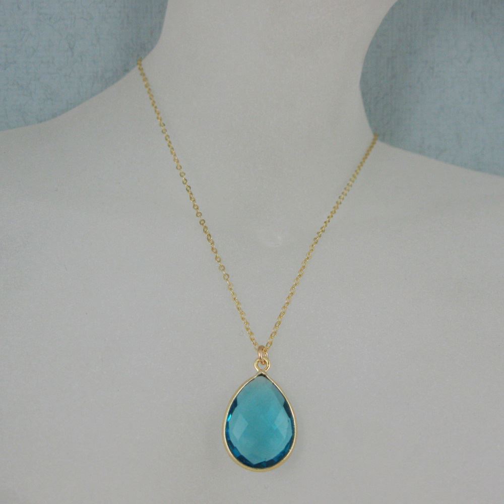 Stone: Blue QuartzStone Shape: Faceted pear shape on both sides. Pendant Measurement: 22mm long, stone is 13x18mm. Chain Length: 16 to 24 inches. If you would like a different length please contact the seller.