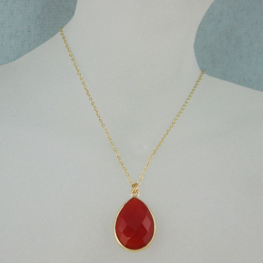Stone: CarnelianStone Shape: Faceted pear shape on both sides. Pendant Measurement: 22mm long, stone is 13x18mm. Chain Length: 16 to 24 inches. If you would like a different length please contact the seller.