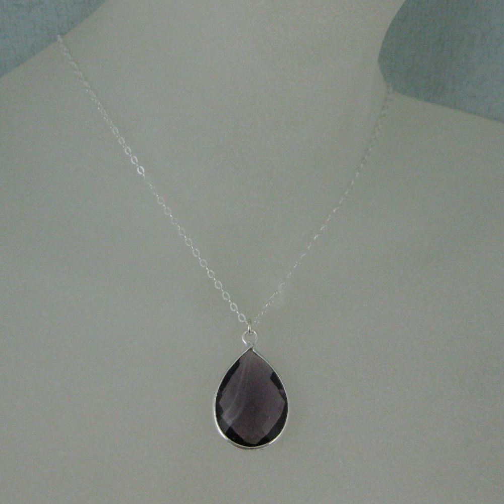 Stone: AmethystStone Shape: Faceted pear shape on both sides. Pendant Measurement: 22mm long, stone is 13x18mm. Chain Length: 16 to 24 inches. If you would like a different length please contact the seller.