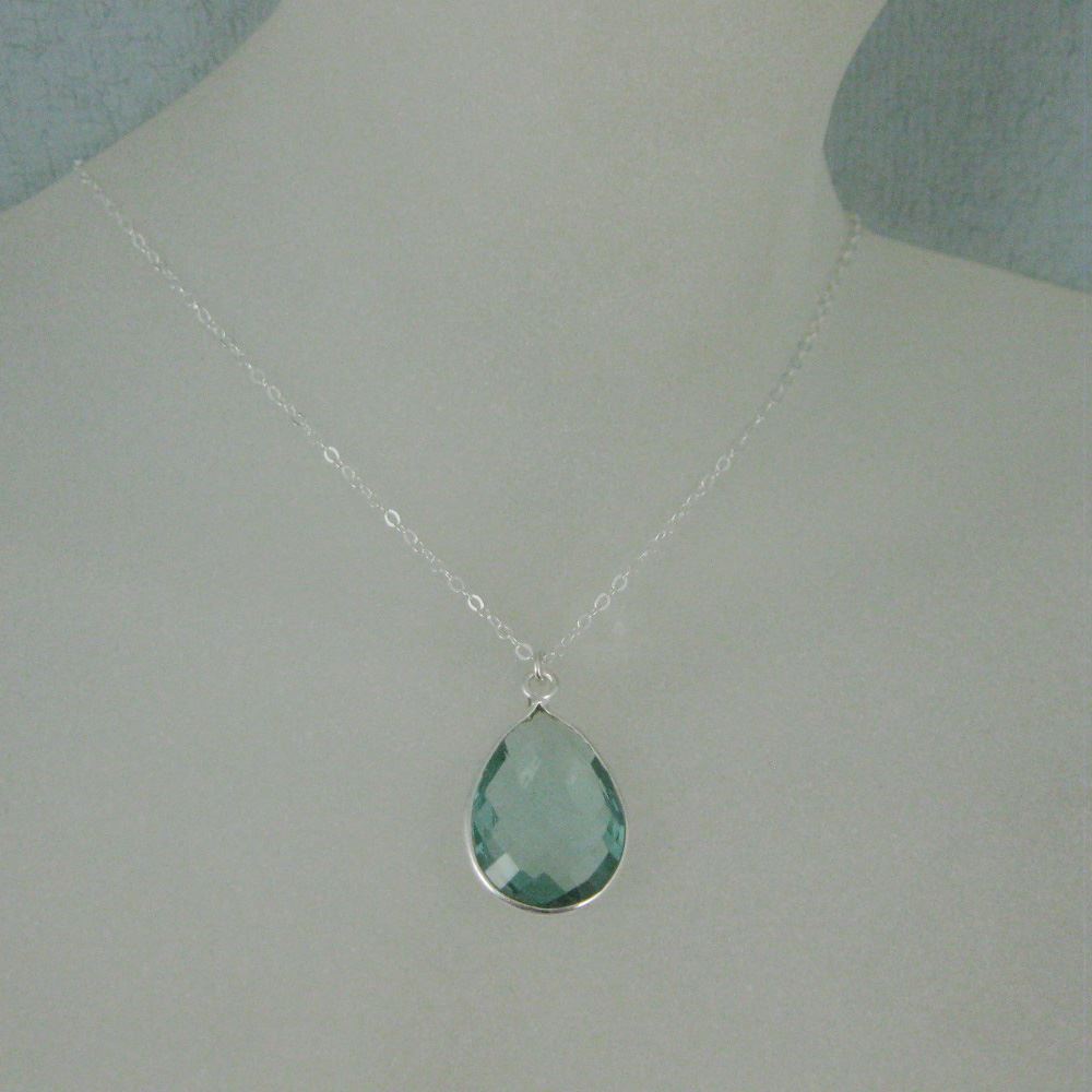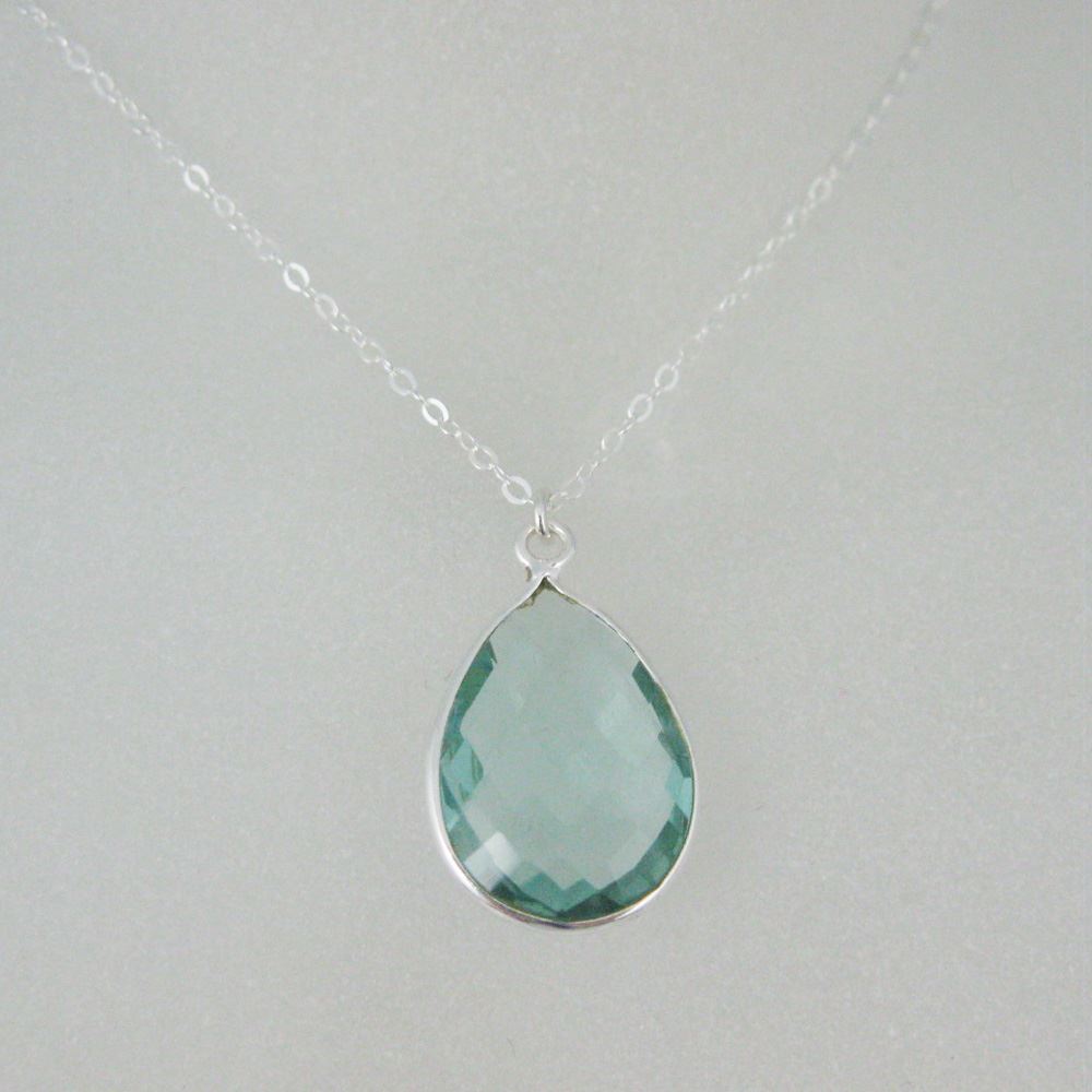 Stone: Aqua QuartzStone Shape: Faceted pear shape on both sides. Pendant Measurement: 22mm long, stone is 13x18mm. Chain Length: 16 to 24 inches. If you would like a different length please contact the seller.