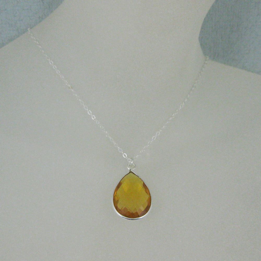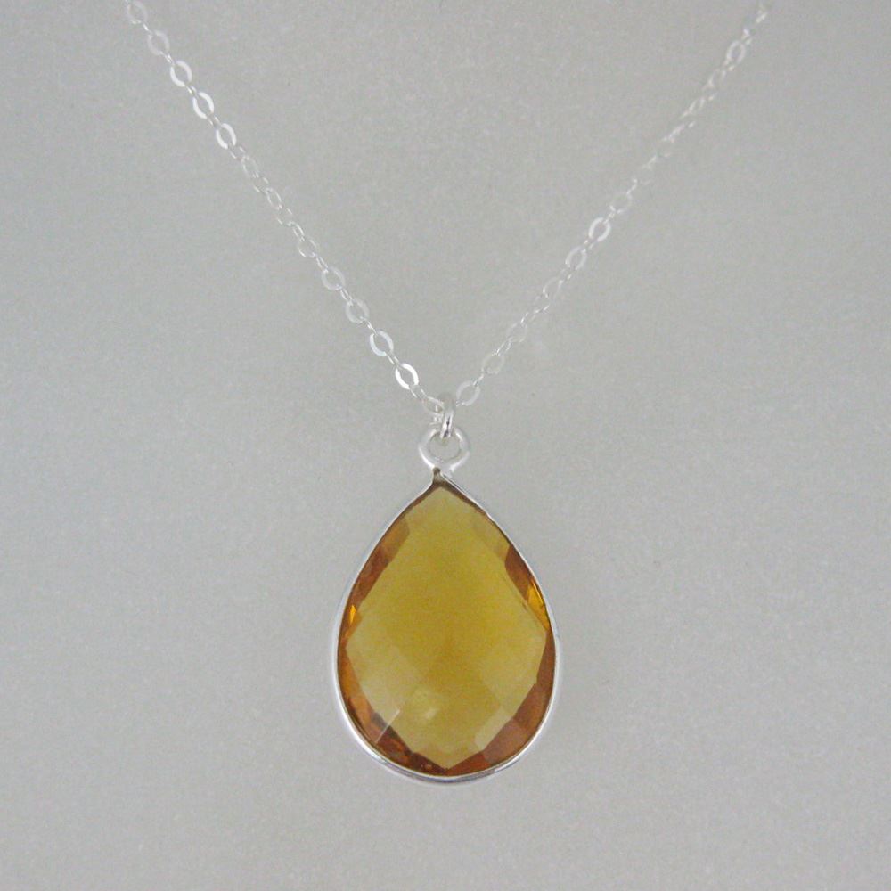 Stone: Citrine QuartzStone Shape: Faceted pear shape on both sides. Pendant Measurement: 22mm long, stone is 13x18mm. Chain Length: 16 to 24 inches. If you would like a different length please contact the seller.