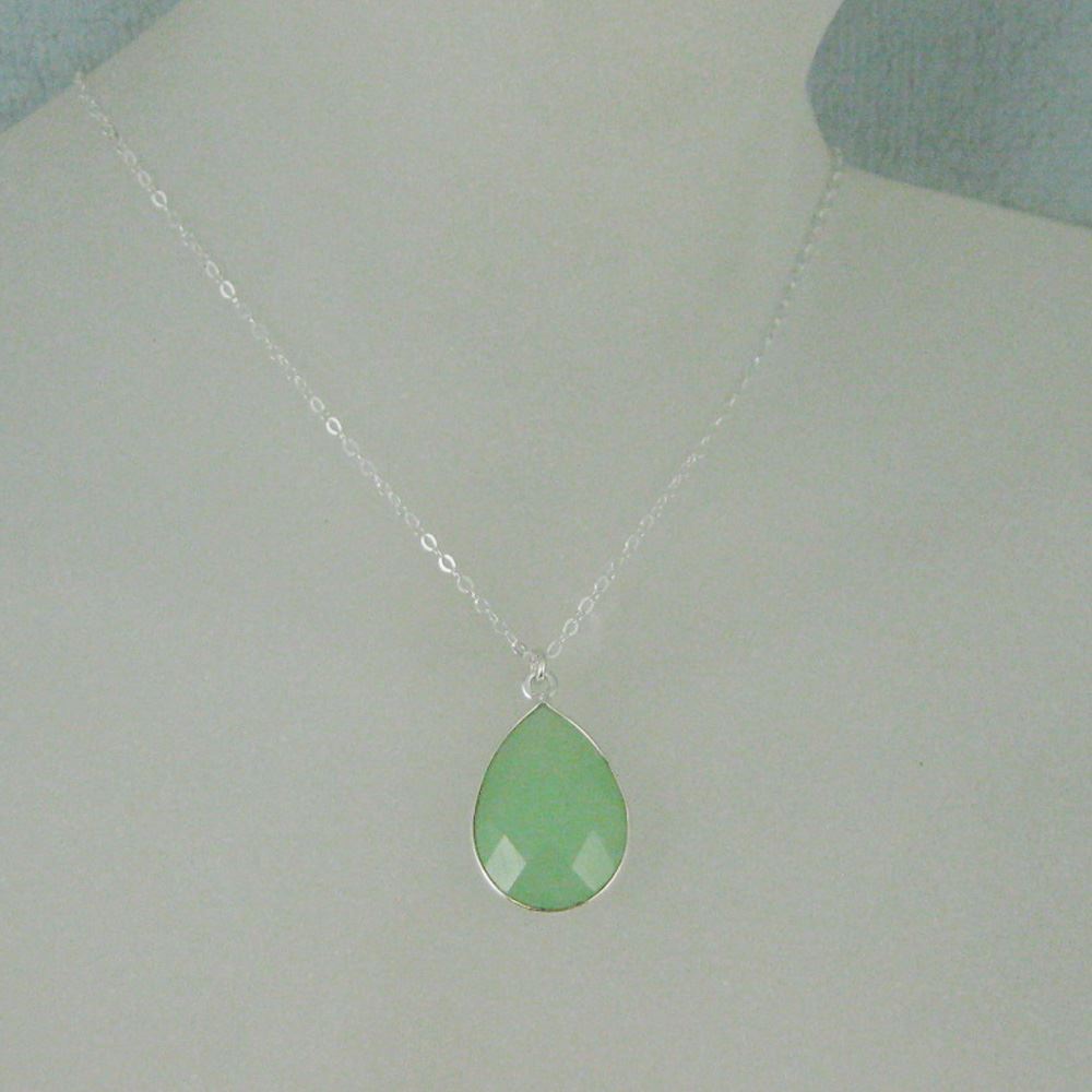 Stone: Prenite ChalcedonyStone Shape: Faceted pear shape on both sides. Pendant Measurement: 22mm long, stone is 13x18mm. Chain Length: 16 to 24 inches. If you would like a different length please contact the seller.