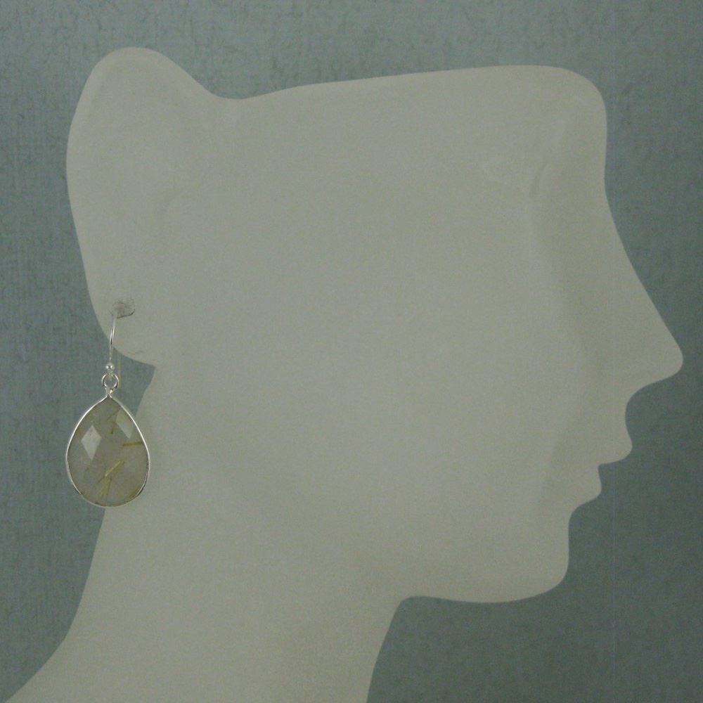 Stone: Gold Rutilated QuartzStone Shape: Faceted tear shape on both sides. Pendant Measurement: 22mm long, stone is 13x18mm. Total Earring Length: 30mm