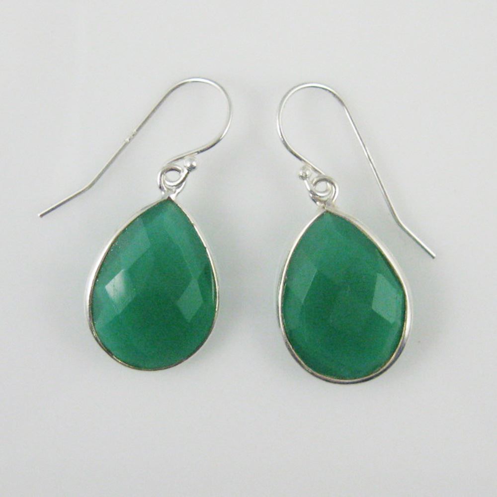 Stone: Green OnyxStone Shape: Faceted tear shape on both sides. Pendant Measurement: 22mm long, stone is 13x18mm. Total Earring Length: 30mm