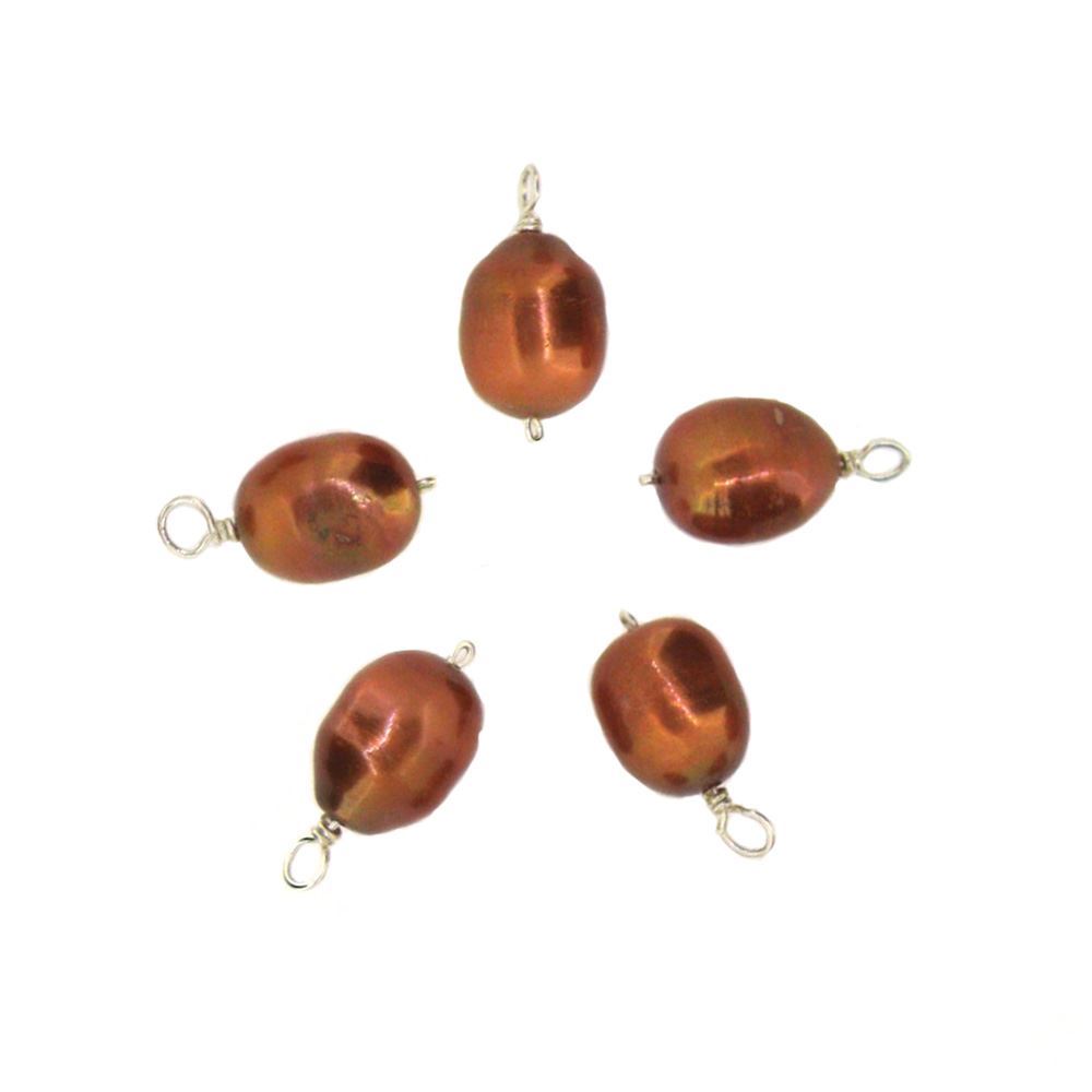 Material: Dyed bronze freshwater pearls, wire wrapped with non-tarnish copper wire, the color will be shiny forever.Size: 9-11.5, 2mm wire holeColor: BronzeShape: OvalQuantity: 5 pieces per bag.