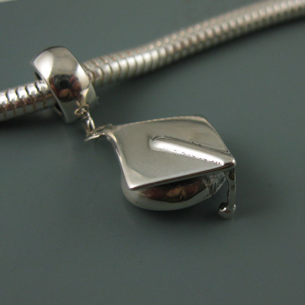 .925 Sterling Silver Graduation Cap Charm Bead