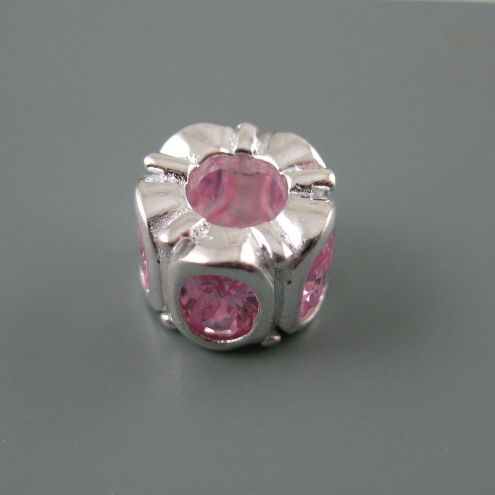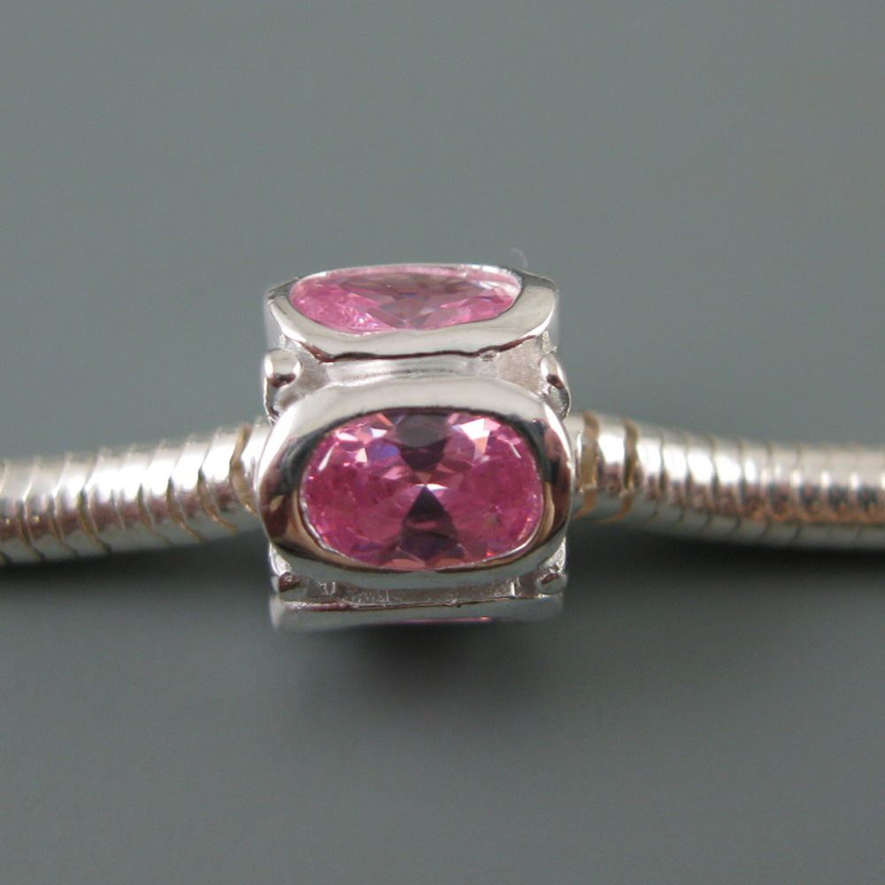 .925 Sterling Silver CZ Oval Stones Charm Bead