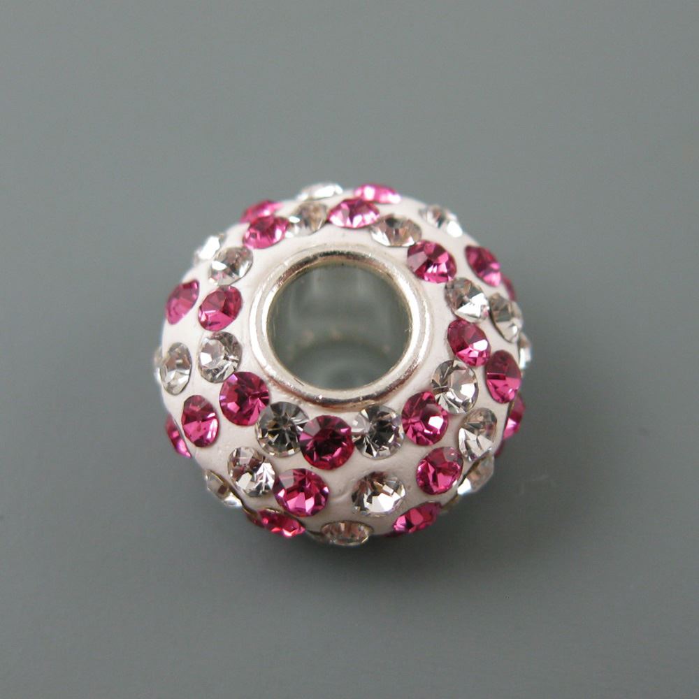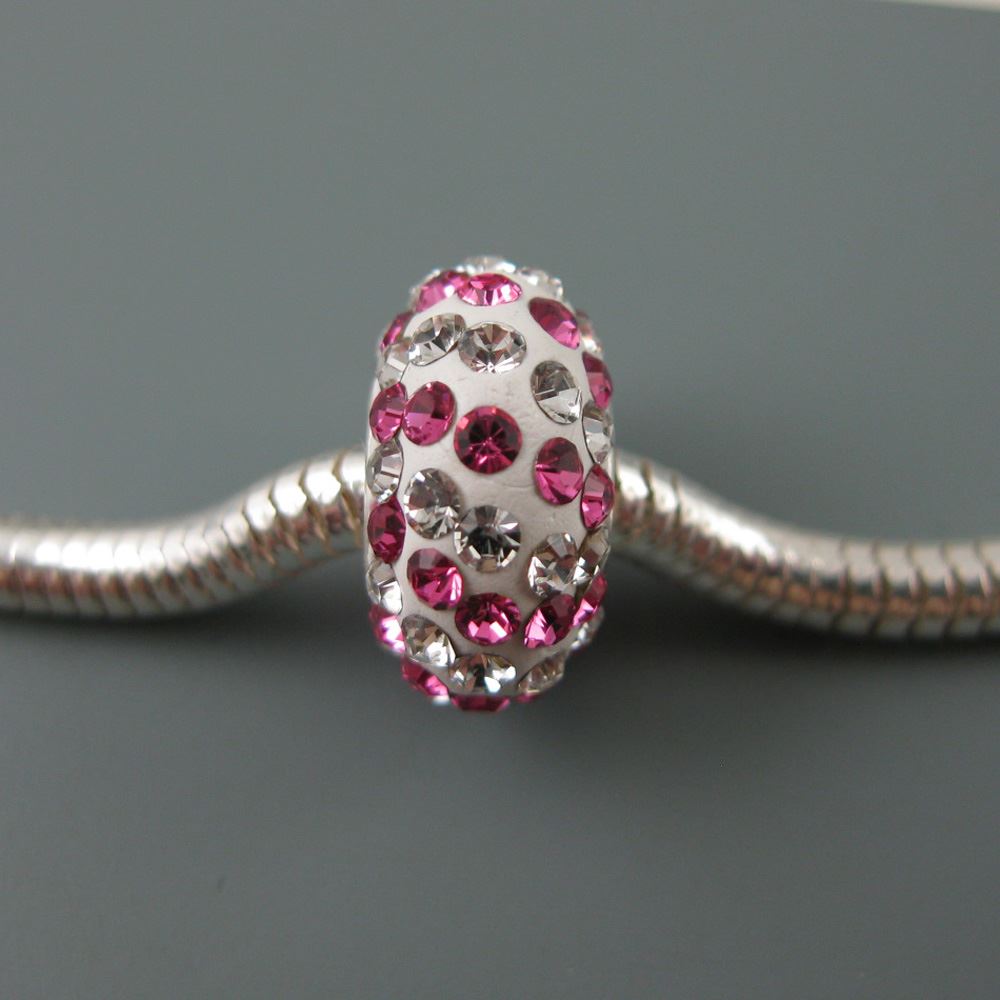 .925 Sterling Silver CZ Pink andSilver Stones Charm Bead