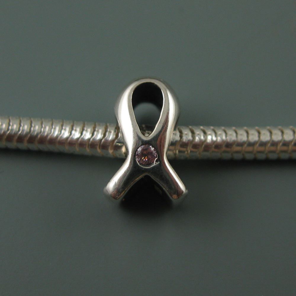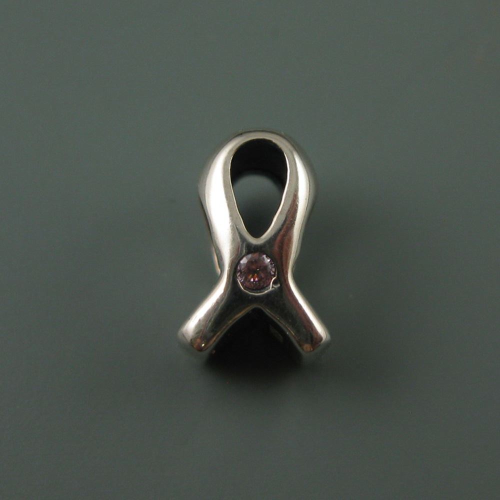 Design: Bright silver, in a Ribbon shape combined with light pink stone, perfect for Breast Cancer Awareness