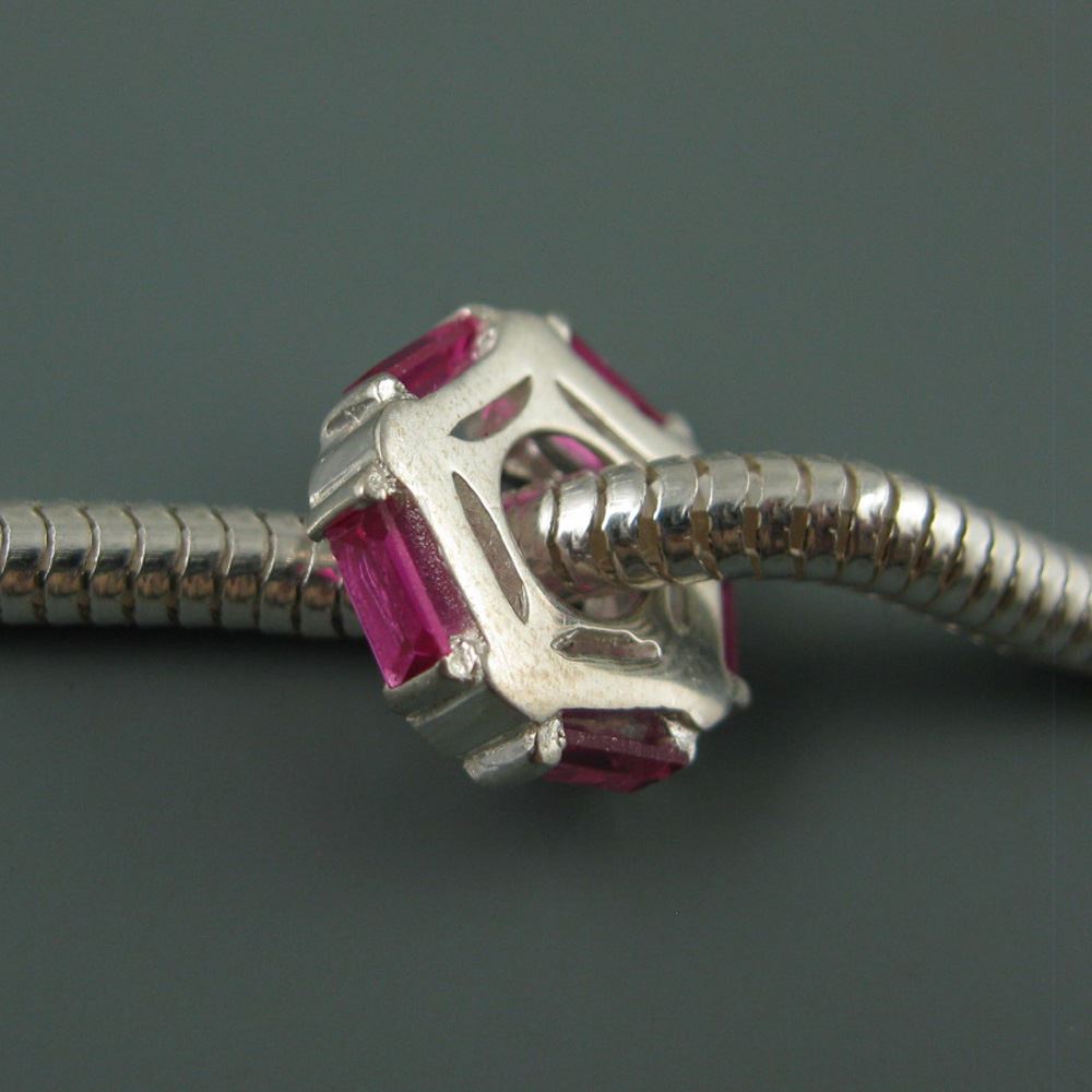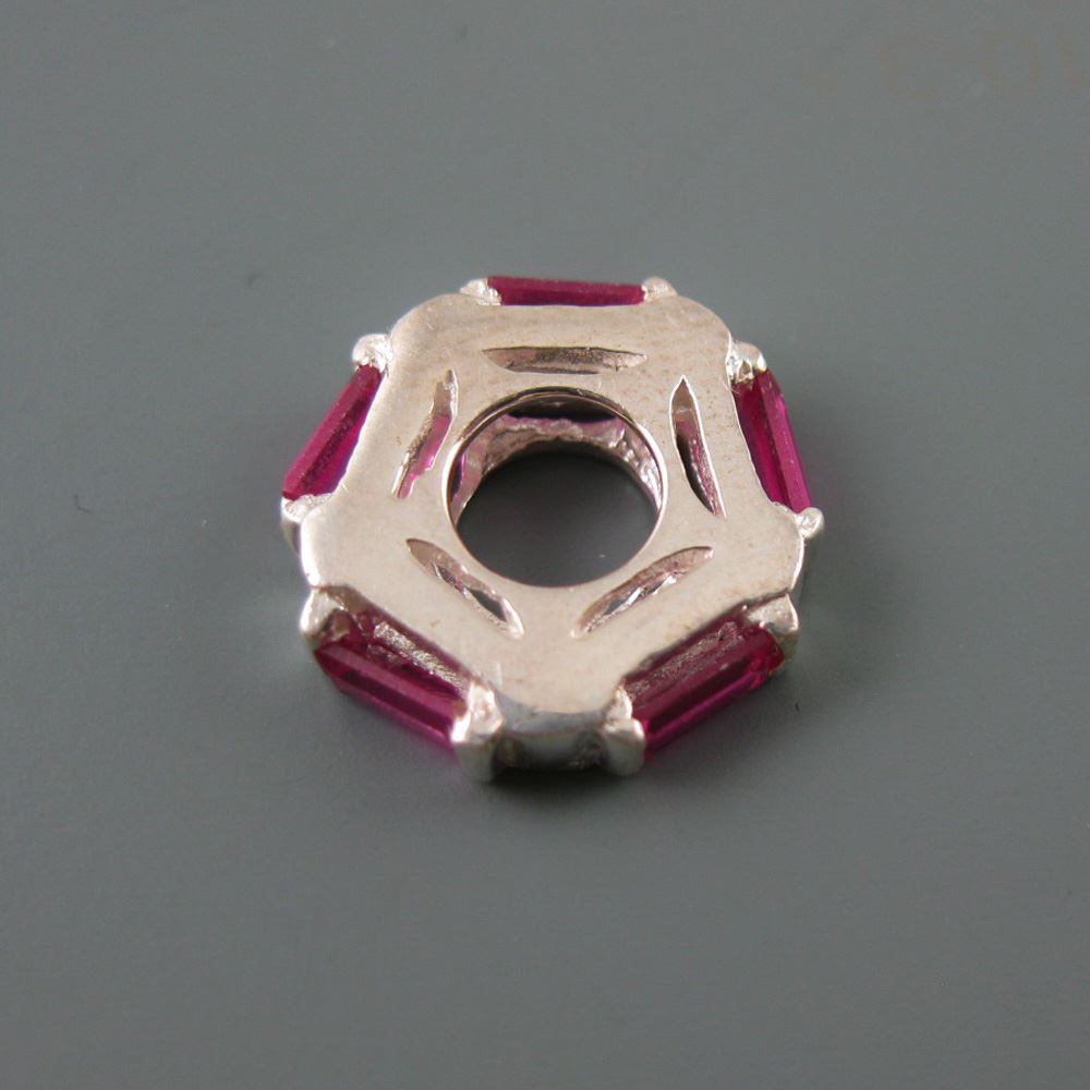 .925 Sterling Silver CZ Magenta Pink Pentagon Charm Bead