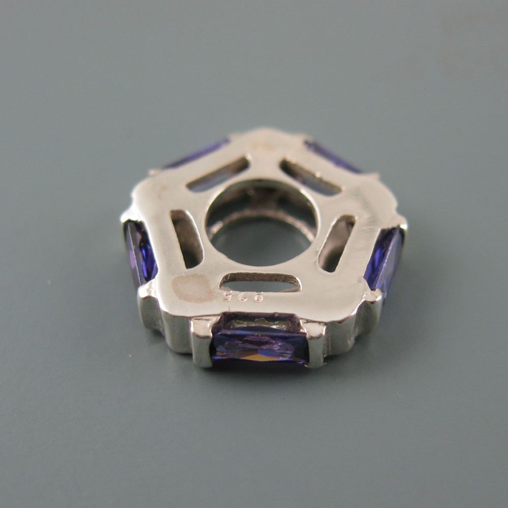 .925 Sterling Silver CZ Purple Pentagon Charm Bead