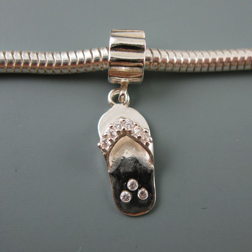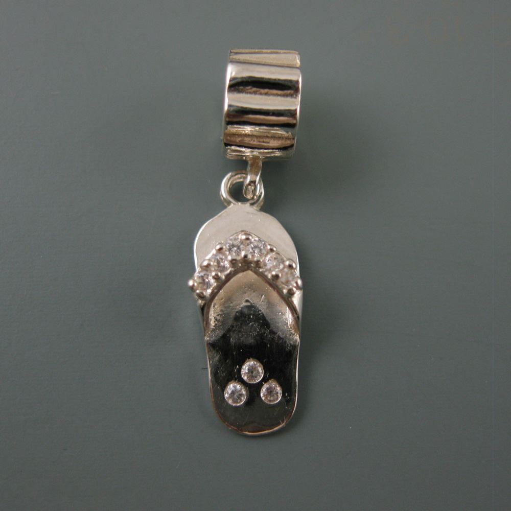 .925 Sterling Silver CZ Sandal Charm Bead