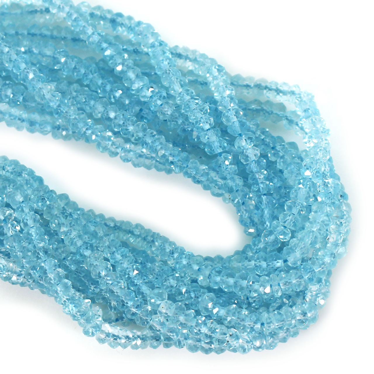 Gemstone Name: Blue Topaz - December birthstoneShape: Faceted RondellSize: 3.5mm- 4mm wide and about 2.5mm thicknessLength: 14 inches.Number of Beads: About 160 Beads