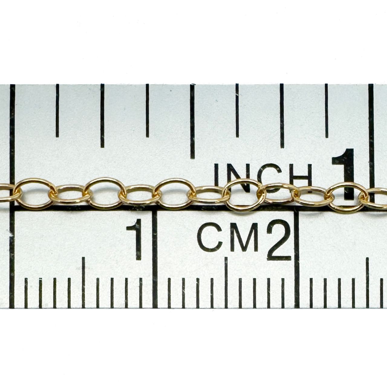 Add to compare list Gold Over Sterling Silver Chain - Oval Round Cable Bulk Chain 2.5x3.5mm (sold per foot) SKU : 101014-VM OD-3.5mm long by 2.5mm wide 10 links per inch Log In for Wholesale Prices