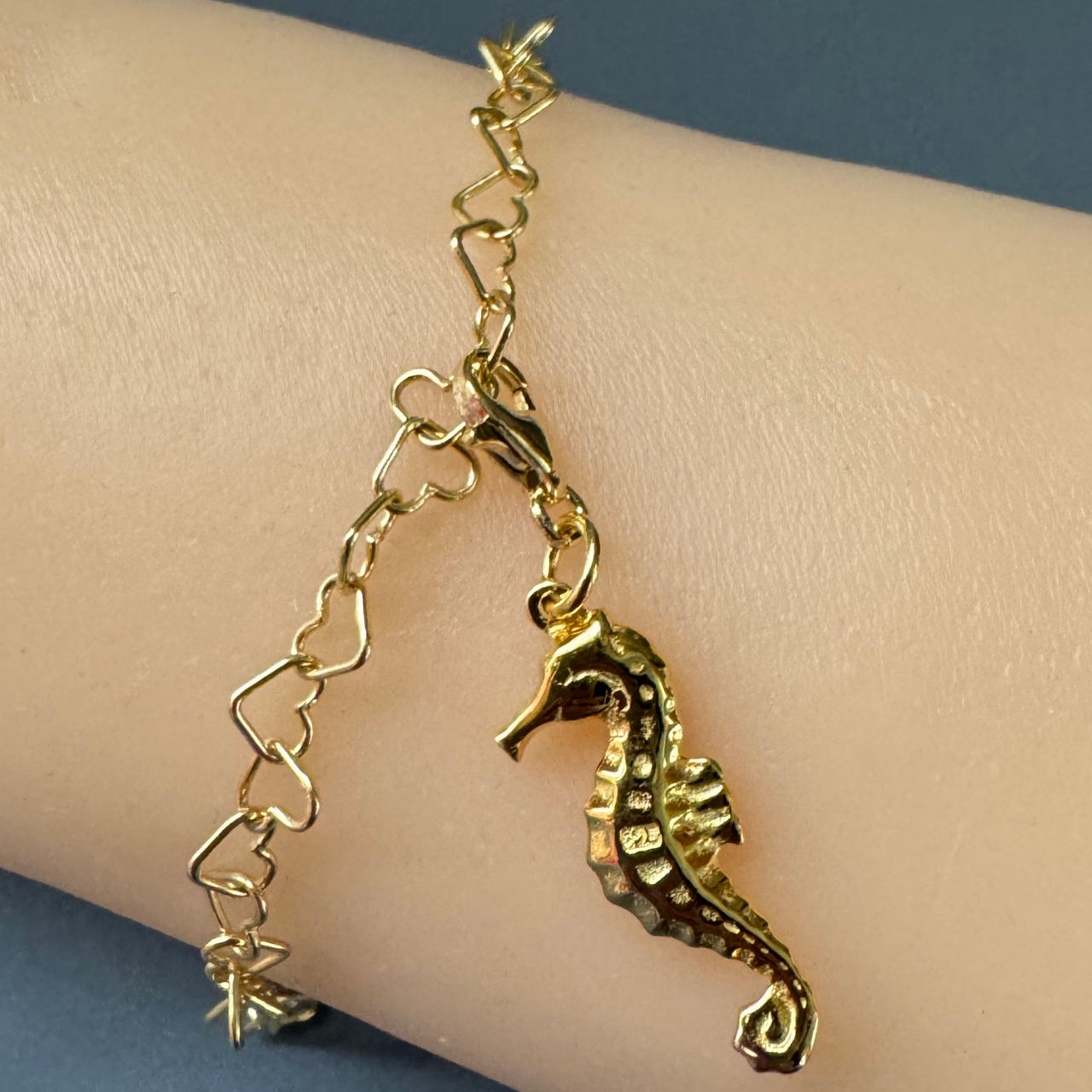 Material: Gold over 925 Sterling Silver - Made in ItalyShape: Detailed Seahorse charm with an 8mm lobster clasp