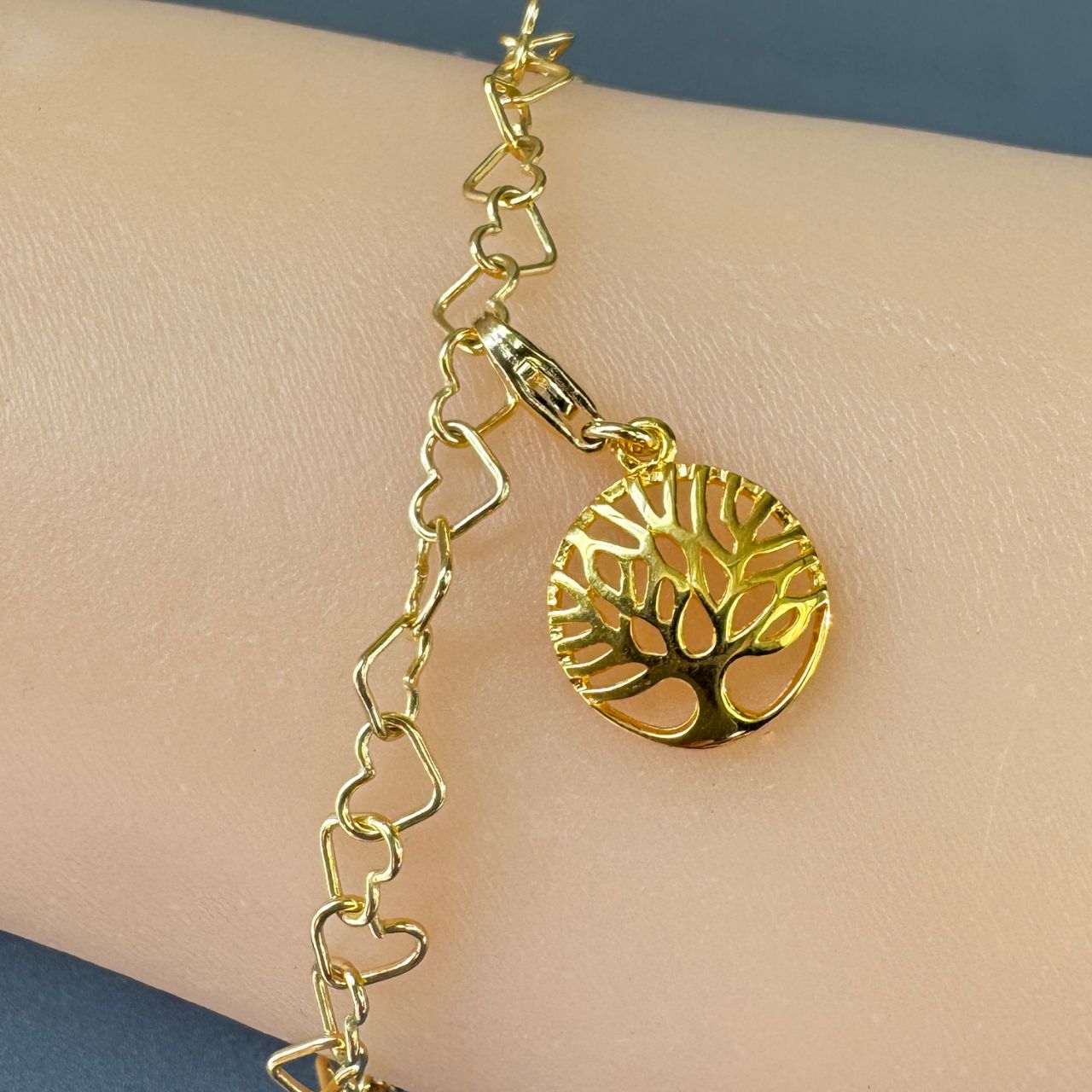 Material: 22k Gold over Solid Genuine .925 Sterling Silver. Shape: Round tree charm with an 8mm lobster clasp