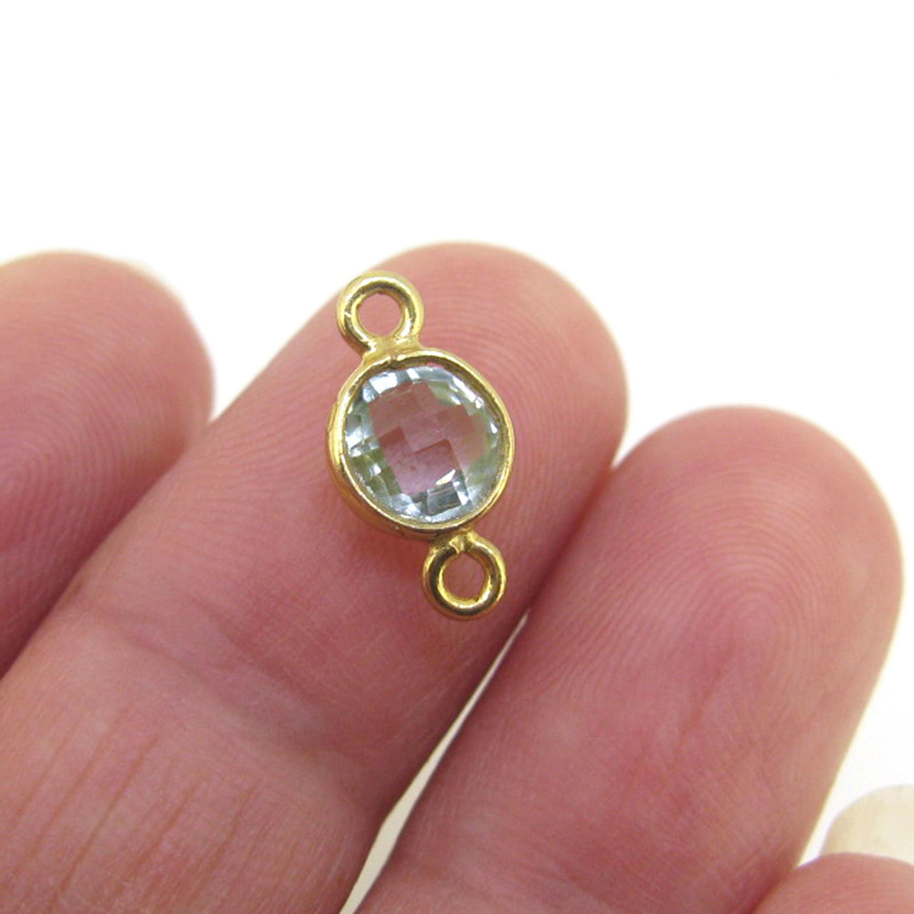 Stone: Aqua QuartzFrame Material: Solid Genuine .925 Sterling Silver with gold platingShape: Faceted coin on both sides Measurement: 13mm with both rings, stone is 6mm