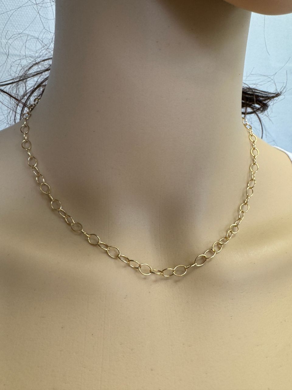 Add to compare list Gold Over Sterling Silver Finished Chain - 5 x 4mm Thick Round Oval Cable Chain SKU : 601047-VM Lengths: 7" - 36" Link size is 5 mm by 4mm Log In for Wholesale Prices