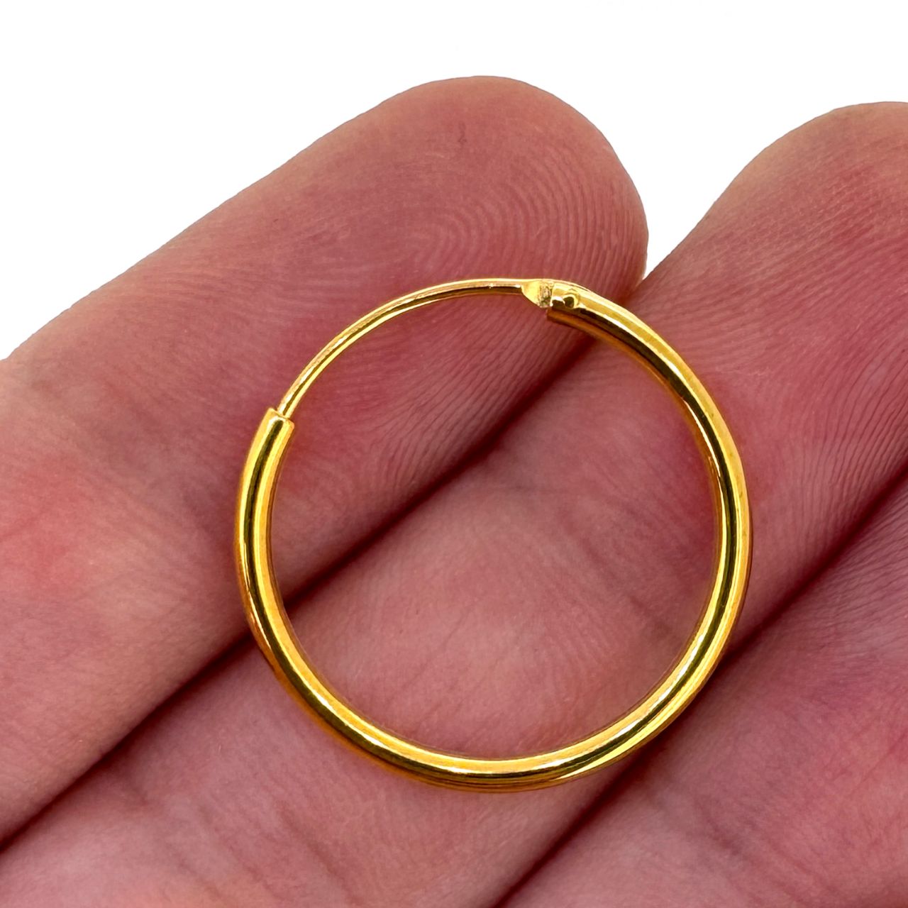 Material: Gold over 925 Sterling Silver Shape: Simple hoop style Component size: 14mm in diameter, 1.2mm thickness