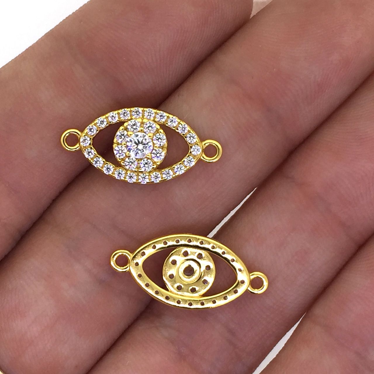Best Seller Add to compare list 925 Sterling Silver Evil Eye Charm with CZ stones 15*9mm (sold per piece) SKU : 201336 Log In for Wholesale Prices