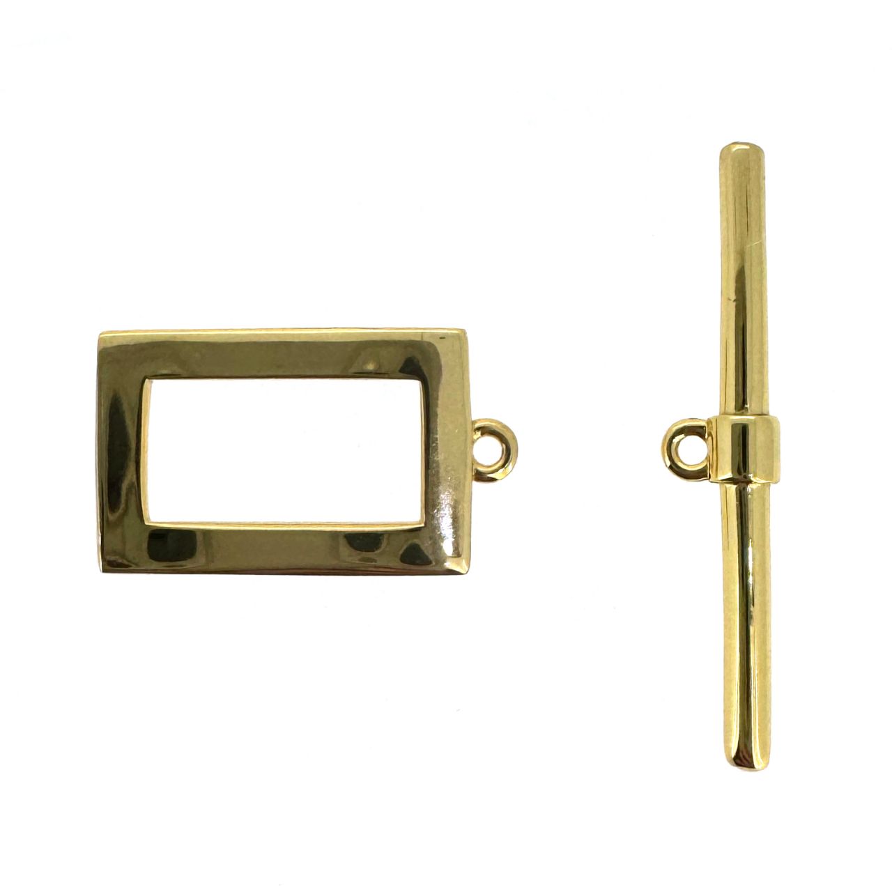 Material: Gold Over Solid Genuine .925 Sterling Silver,with special anti-tarnish plating, the gold color can last for years with normal wearShape: Wavy Rectangle shape toggleMeasurement: Bar is 26mm,2mm thickness; Rectangle is approximately 10*17.7mm with ring - 15.6mm without. Rings are 2.7mm Outer Diameter, 1.2mm Inner.