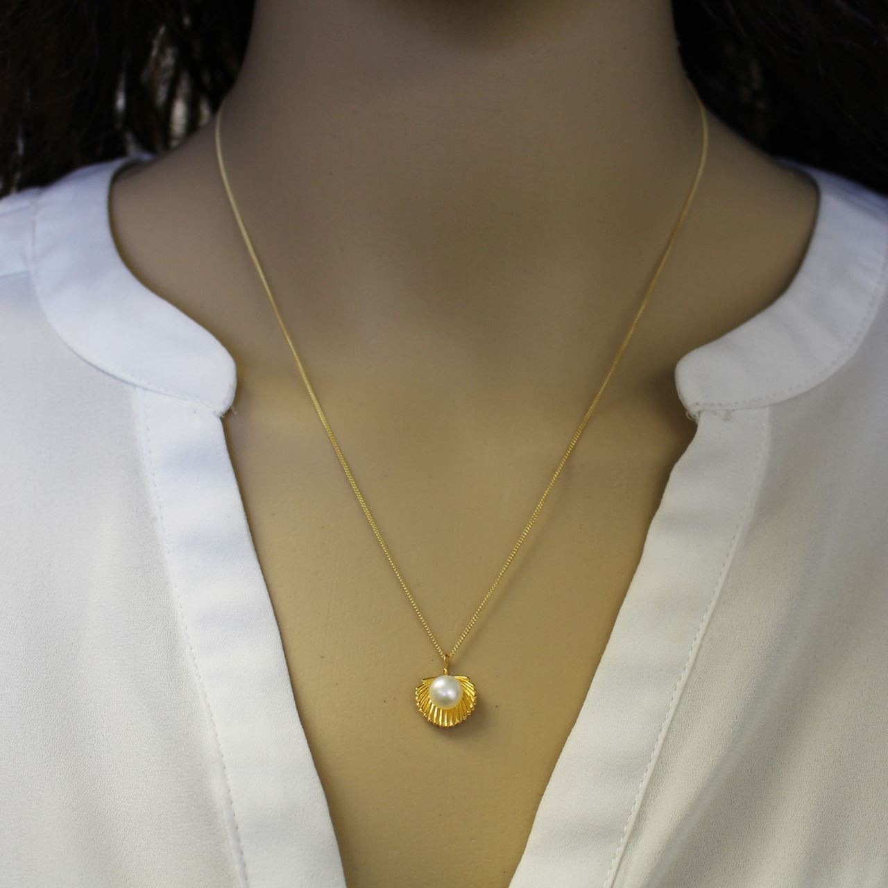 Add to compare list Sterling Silver White Freshwater Pearl Clam Shell Pendant Necklace-18" SKU : AZ20033 Log In for Wholesale Prices